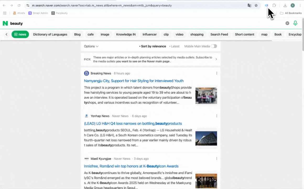 - Navigate to the Naver News search results page.