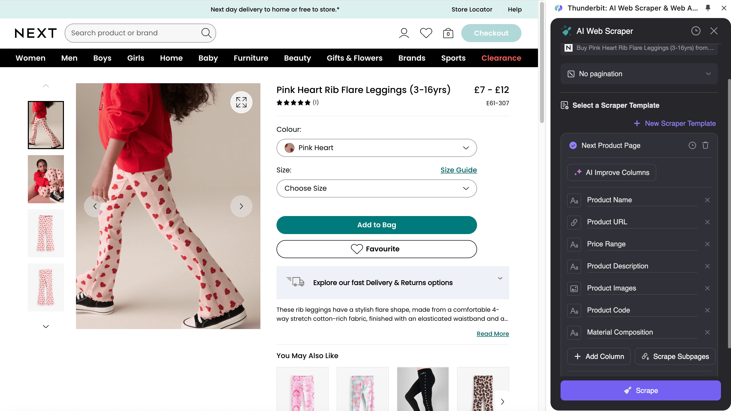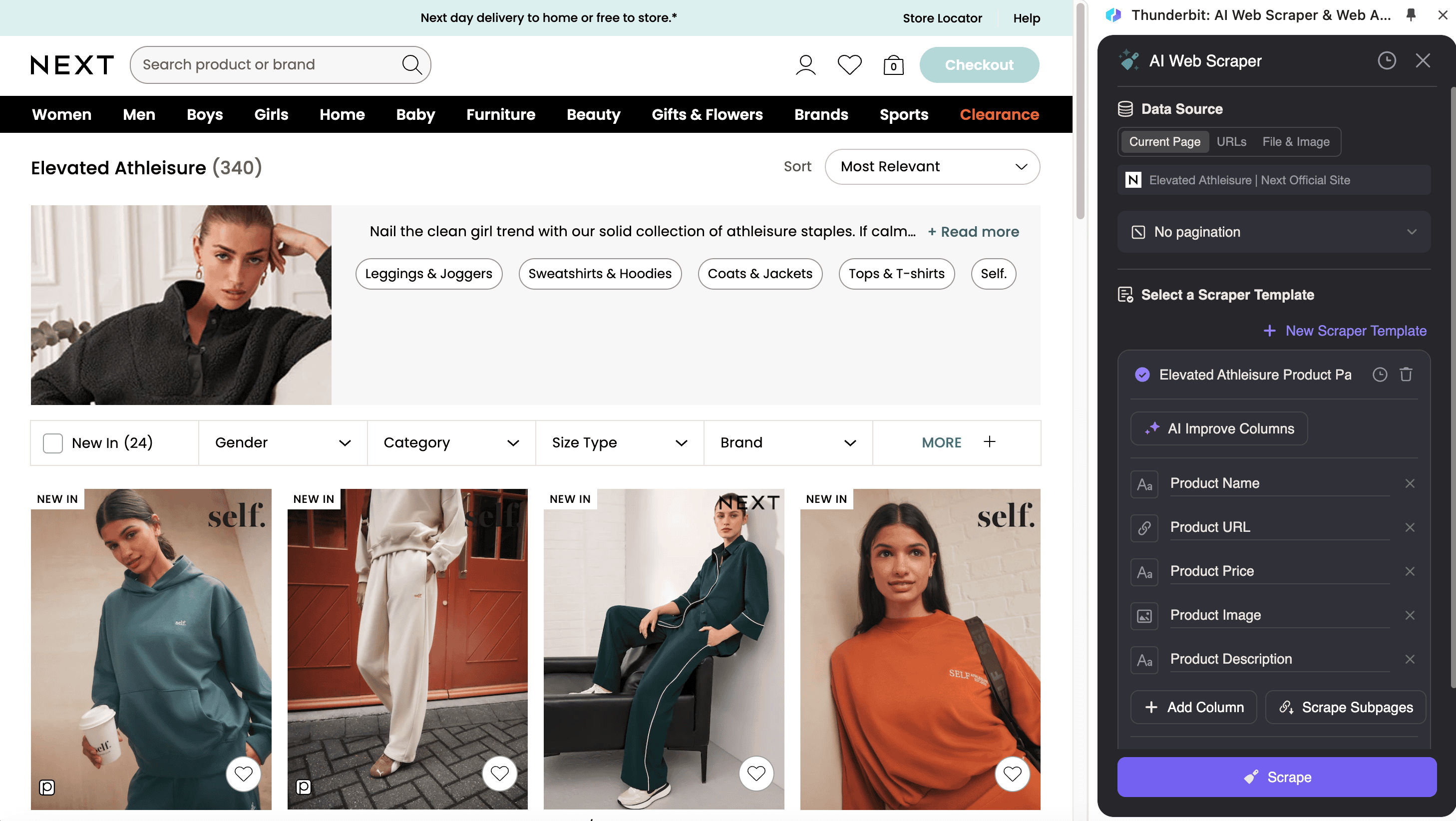 The Next Scraper allows you to extract product details directly from Next's listing pages. This is perfect for gathering information on multiple products at once.