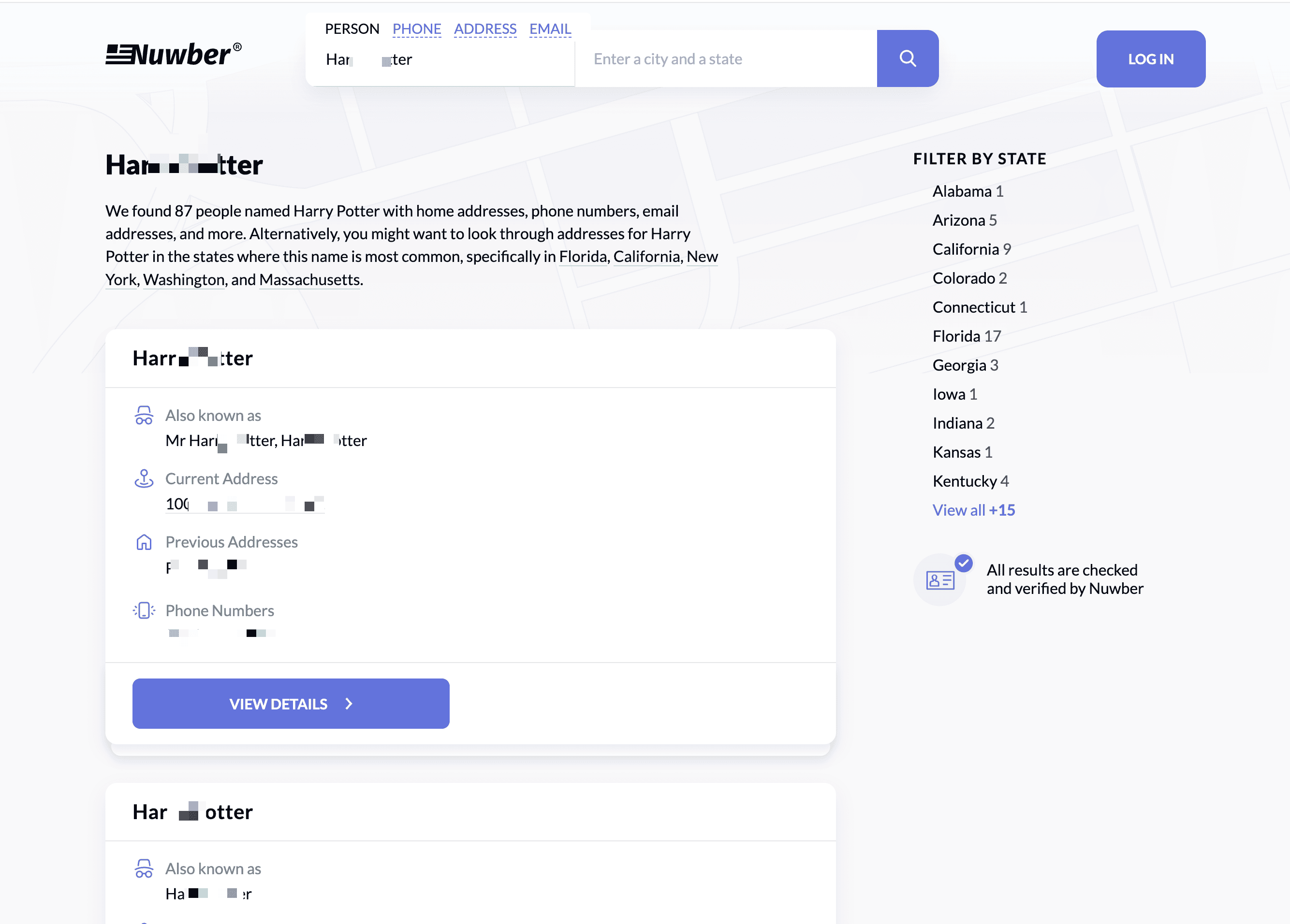 - Go to the destination page, for example: Nuwber People Search Result.