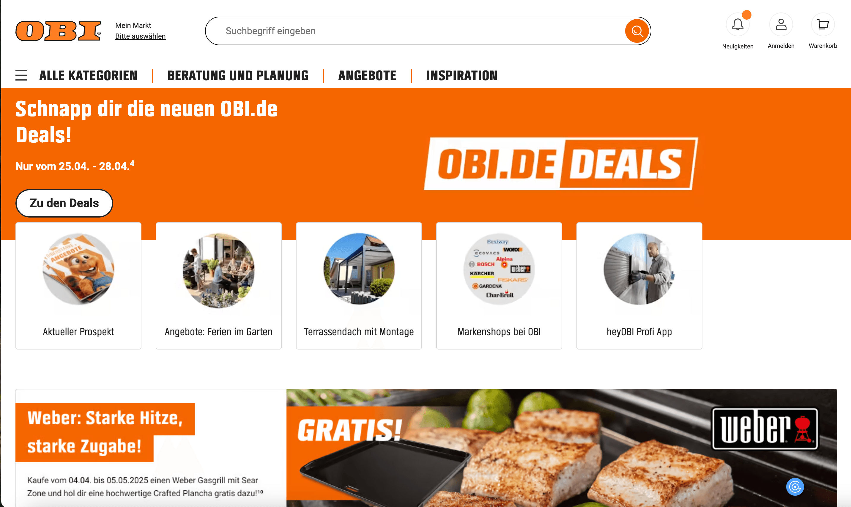 - Navigate to OBI Listings or Product Detail Page: Go to any OBI category or product page.