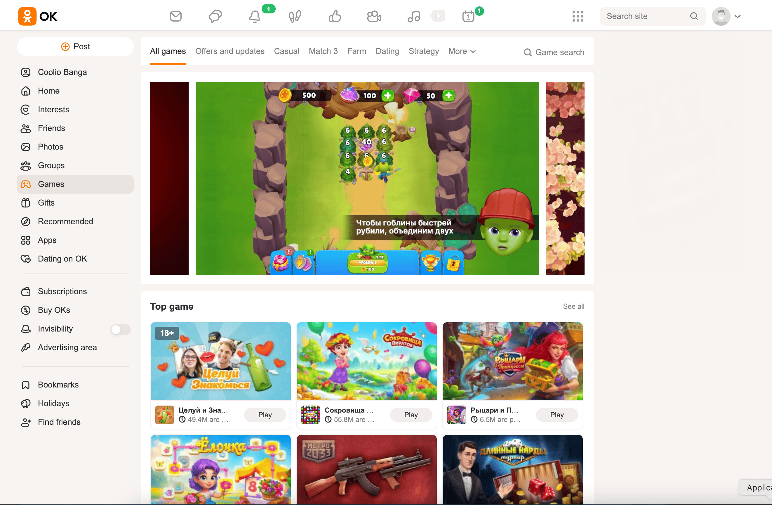 - Go to the destination page, for example: Odnoklassniki Game List.