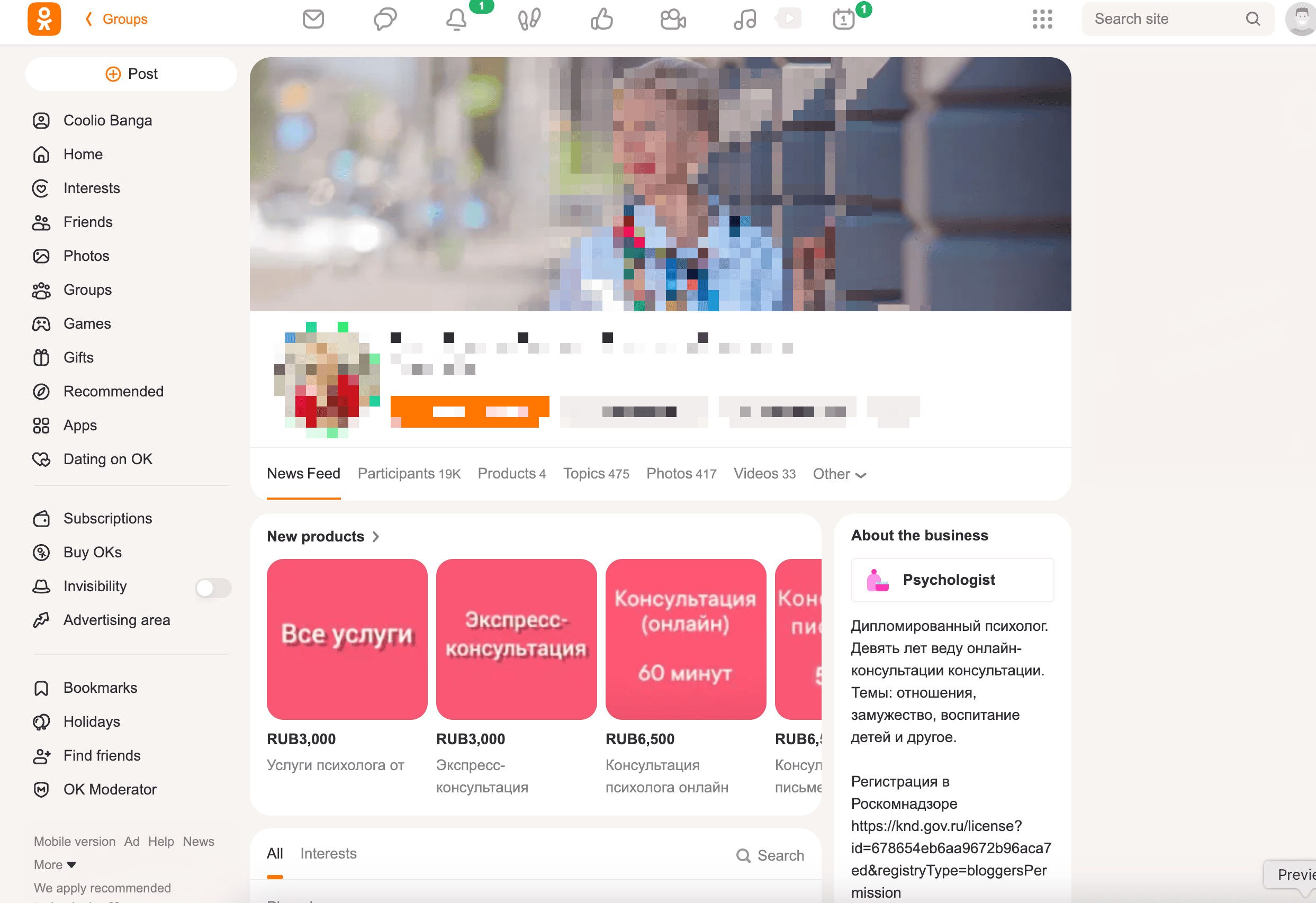 - Go to the destination page, for example: Odnoklassniki Group Details.