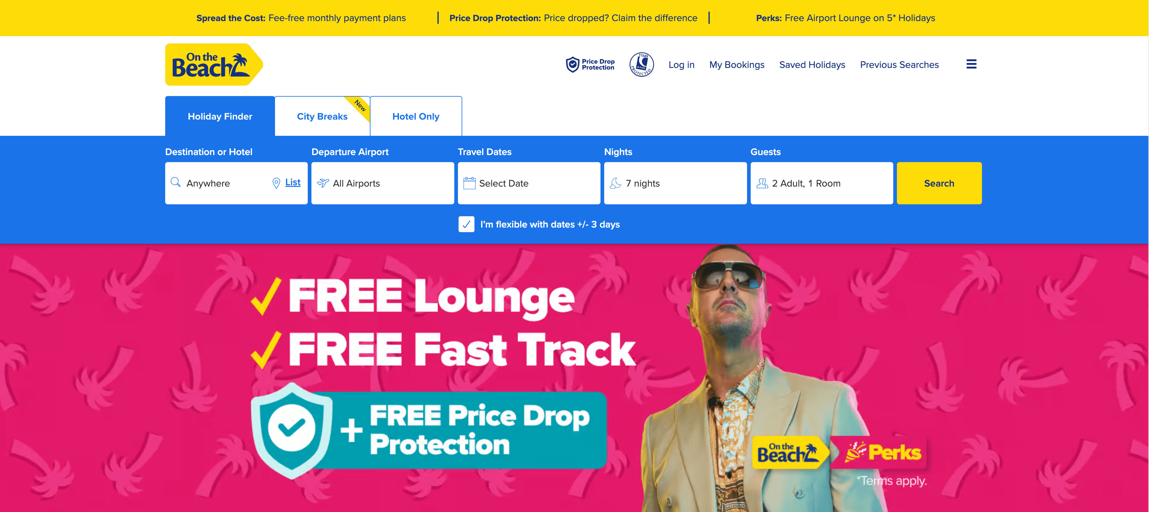 - Go to the On the Beach Holiday Search Result Page.