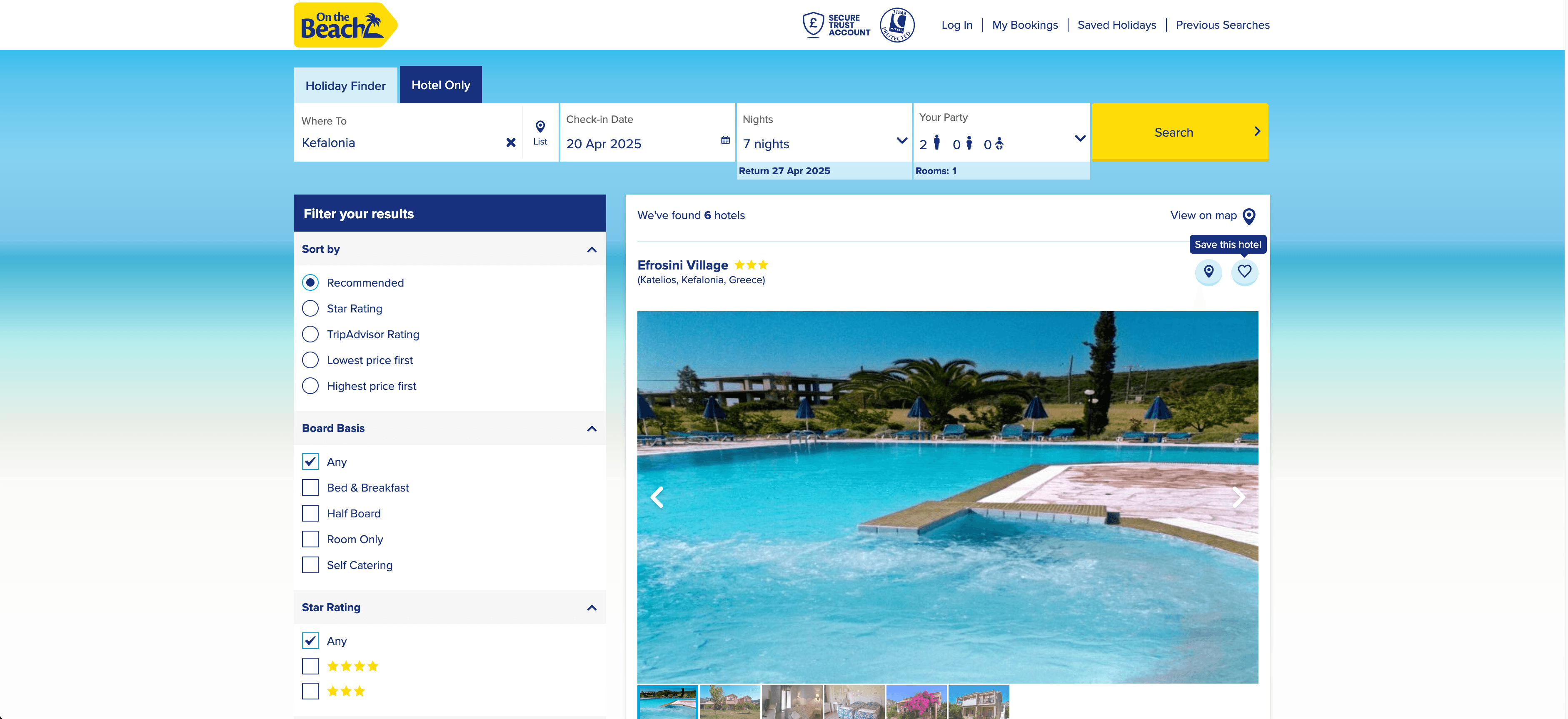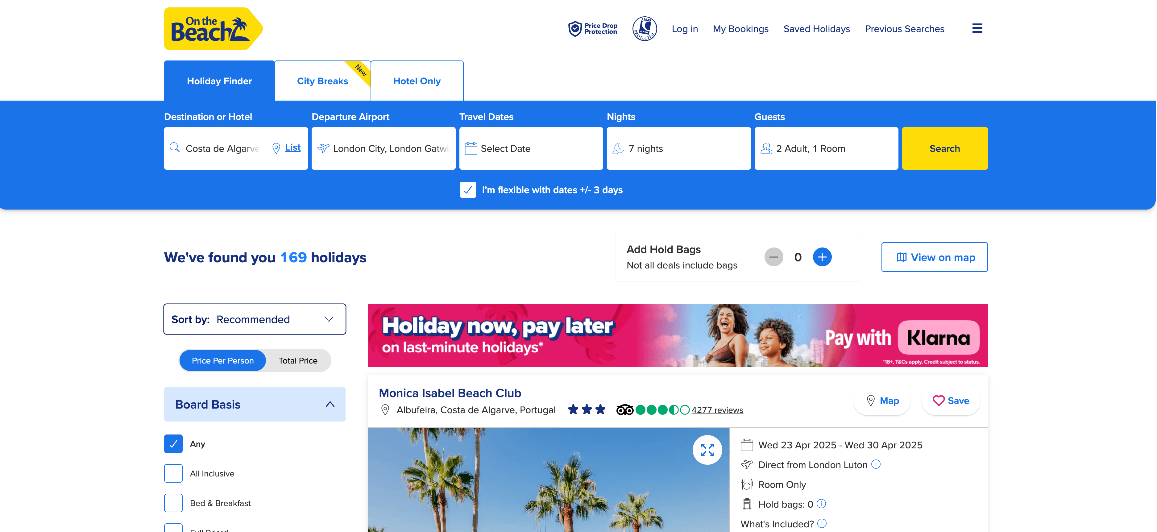 - Navigate to the Holiday or Hotel Search Result Page: Go to your desired On the Beach search results.
