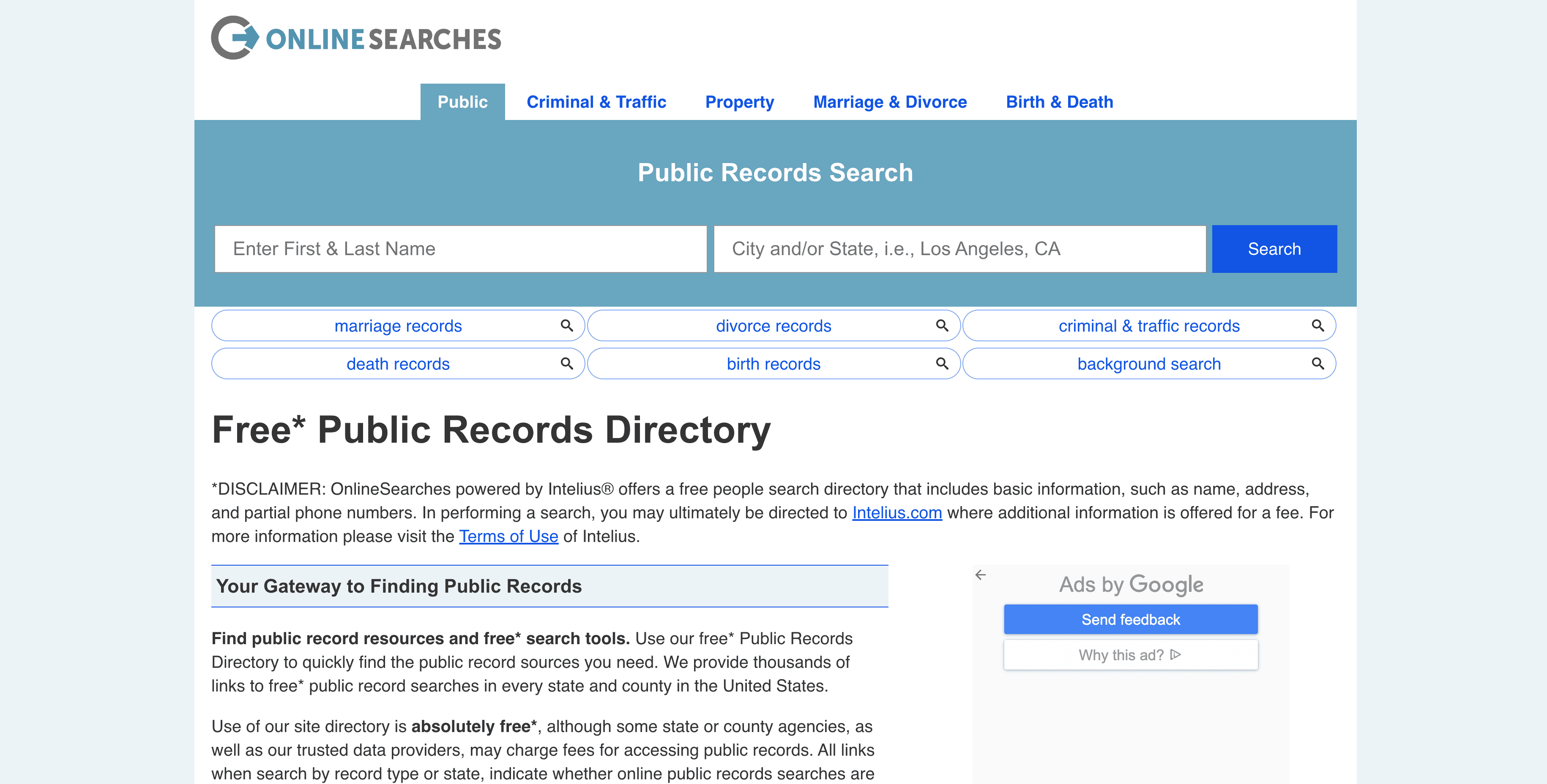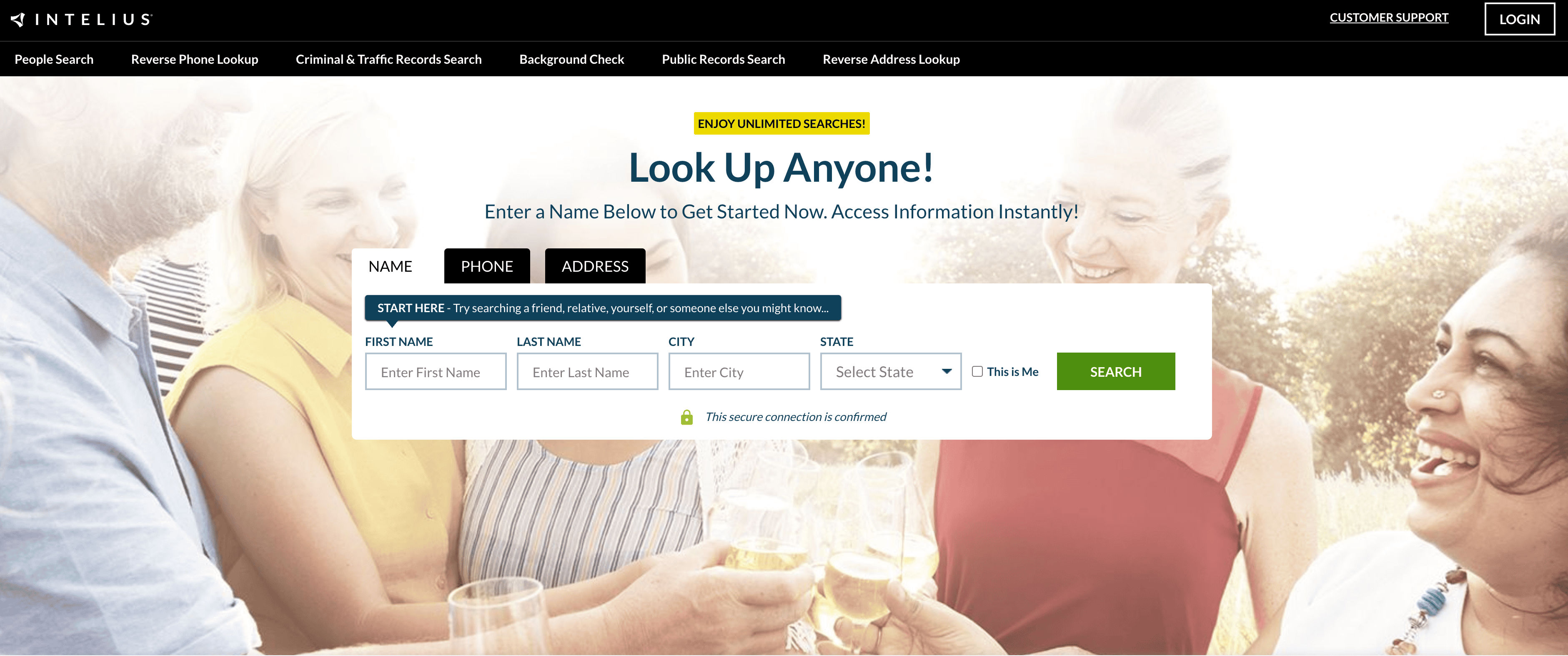 - Go to the destination page, for example: Intelius Search Landing Page.