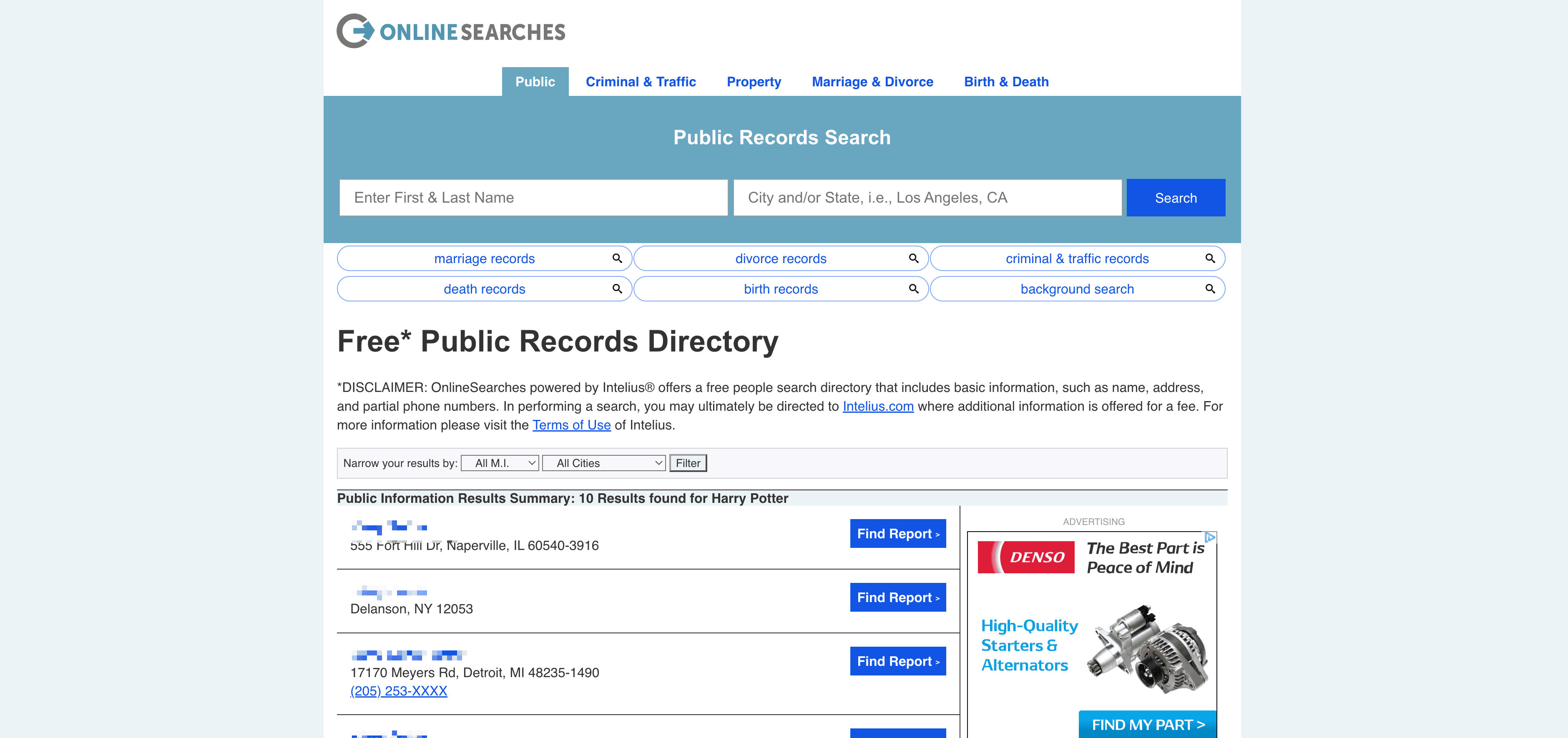 - Go to the destination page, for example: OnlineSearches Public Records Search Result.
