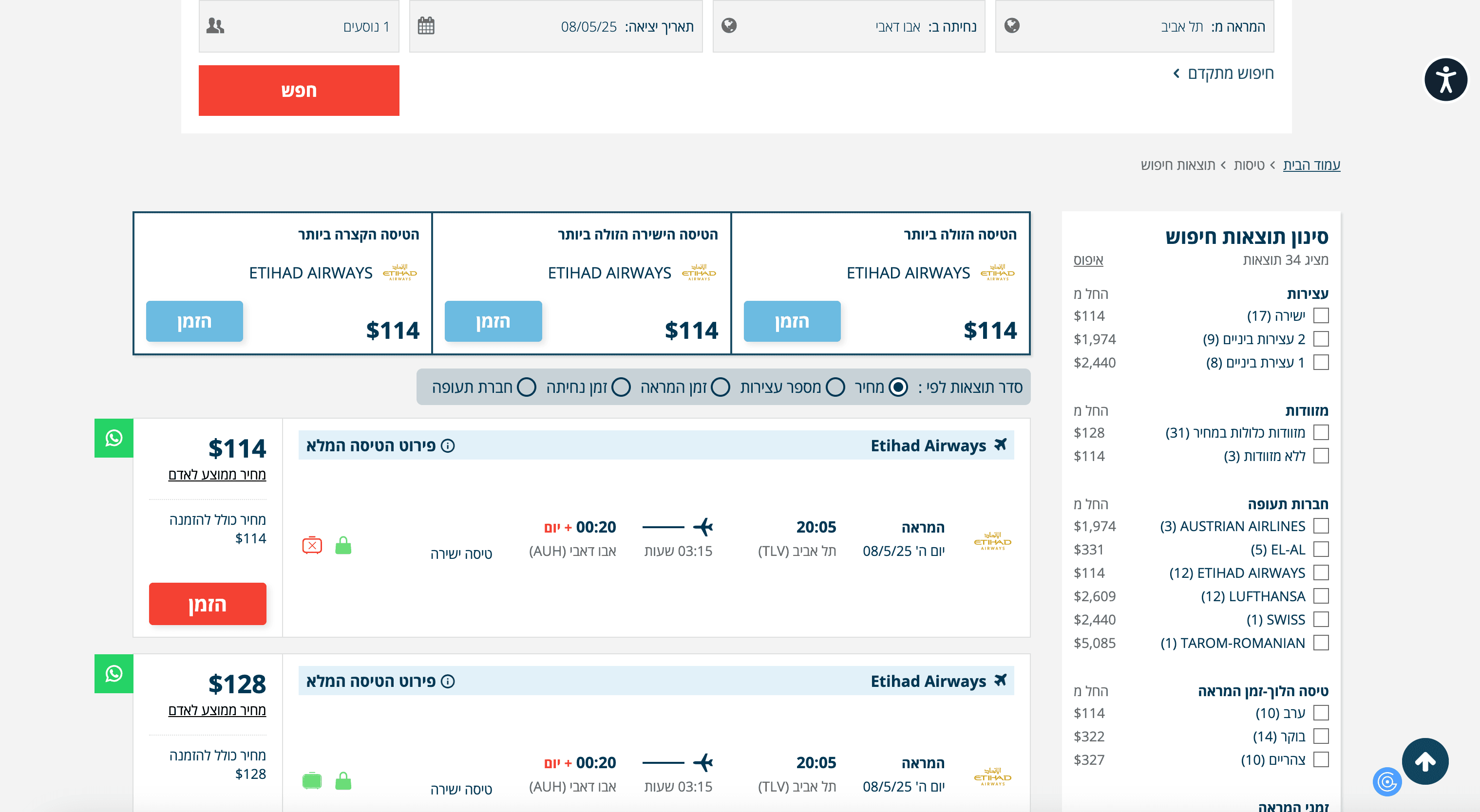 - Go to the ophirtours flights search result page.