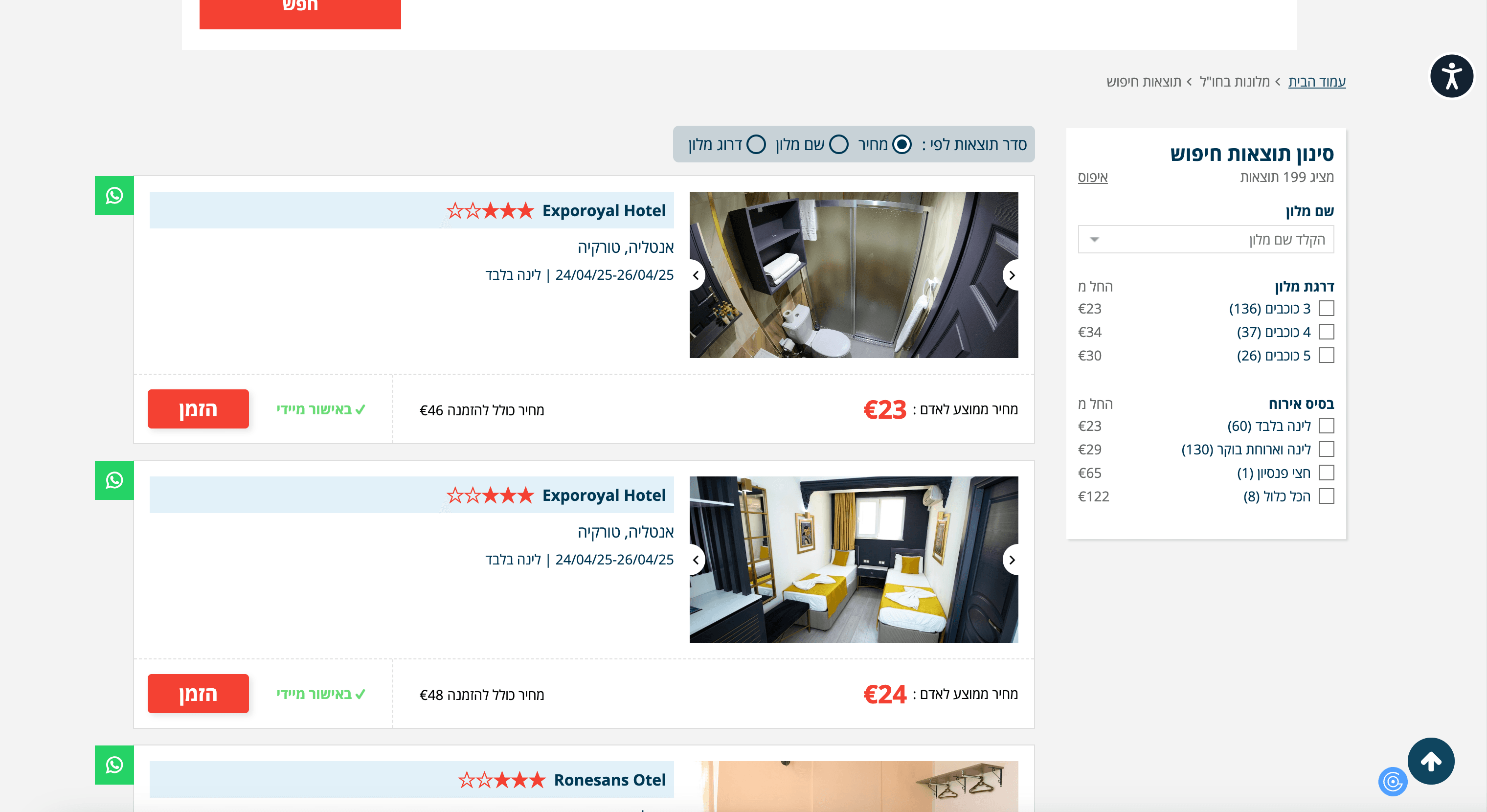 - Go to the ophirtours hotels search result page.