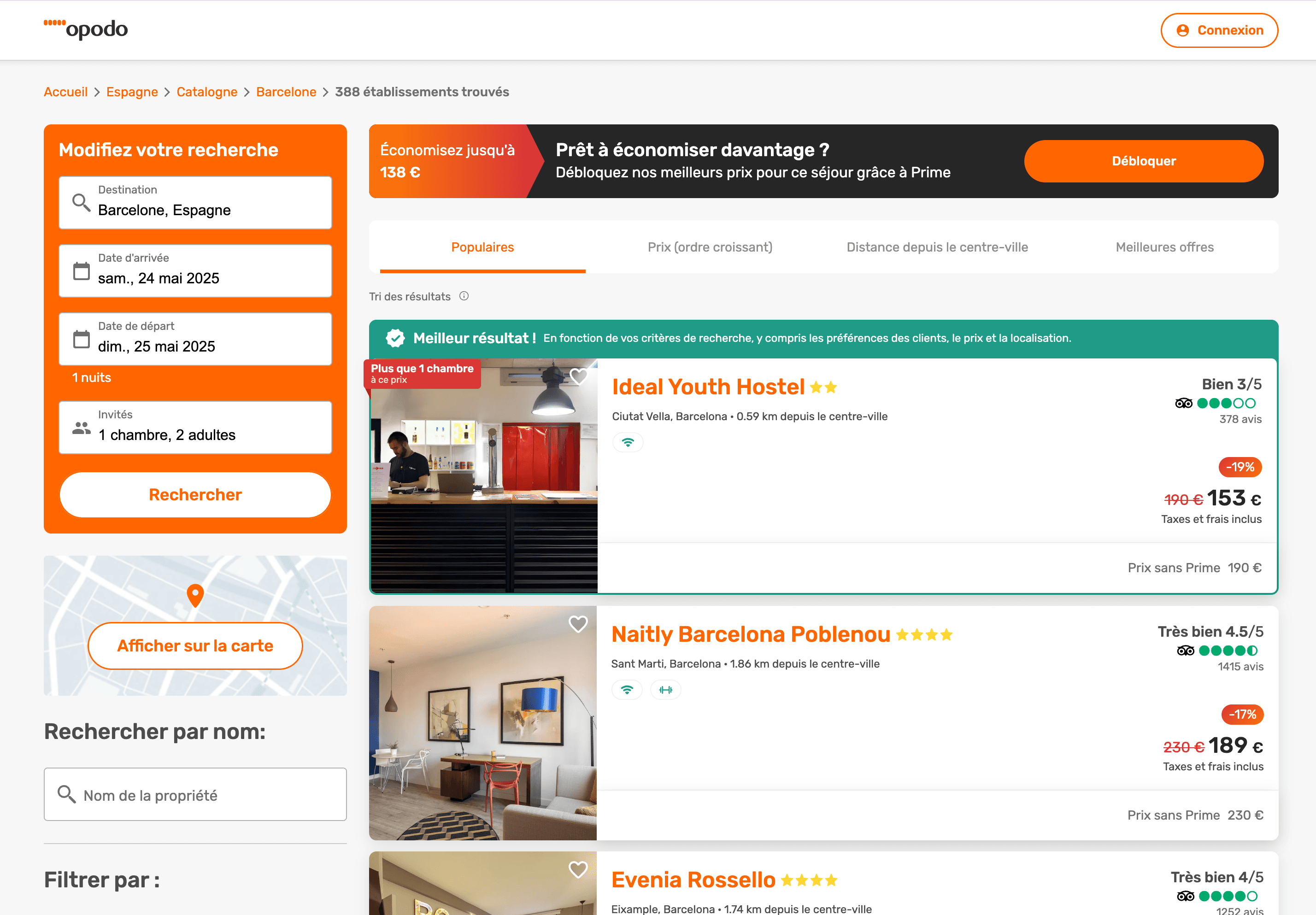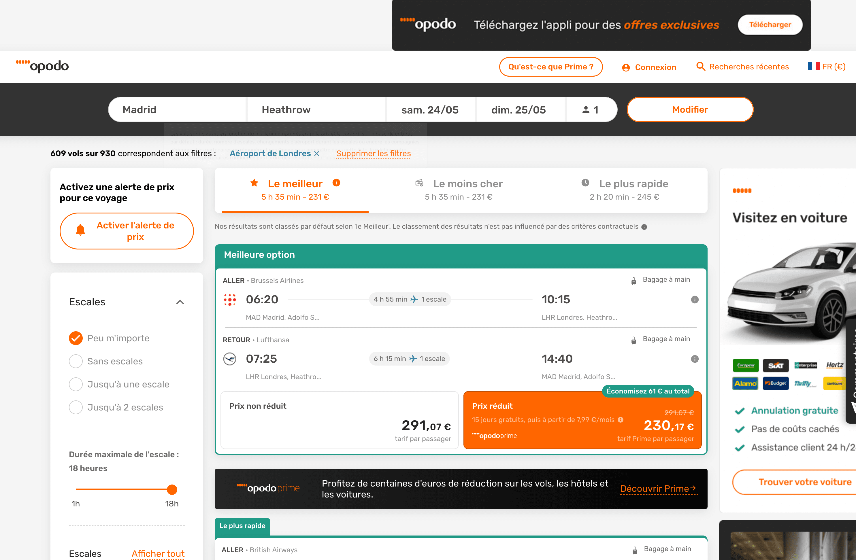- Navigate to Opodo Flight or Hotel Search Results: Go to the Opodo flight search results or Opodo hotel search results page.