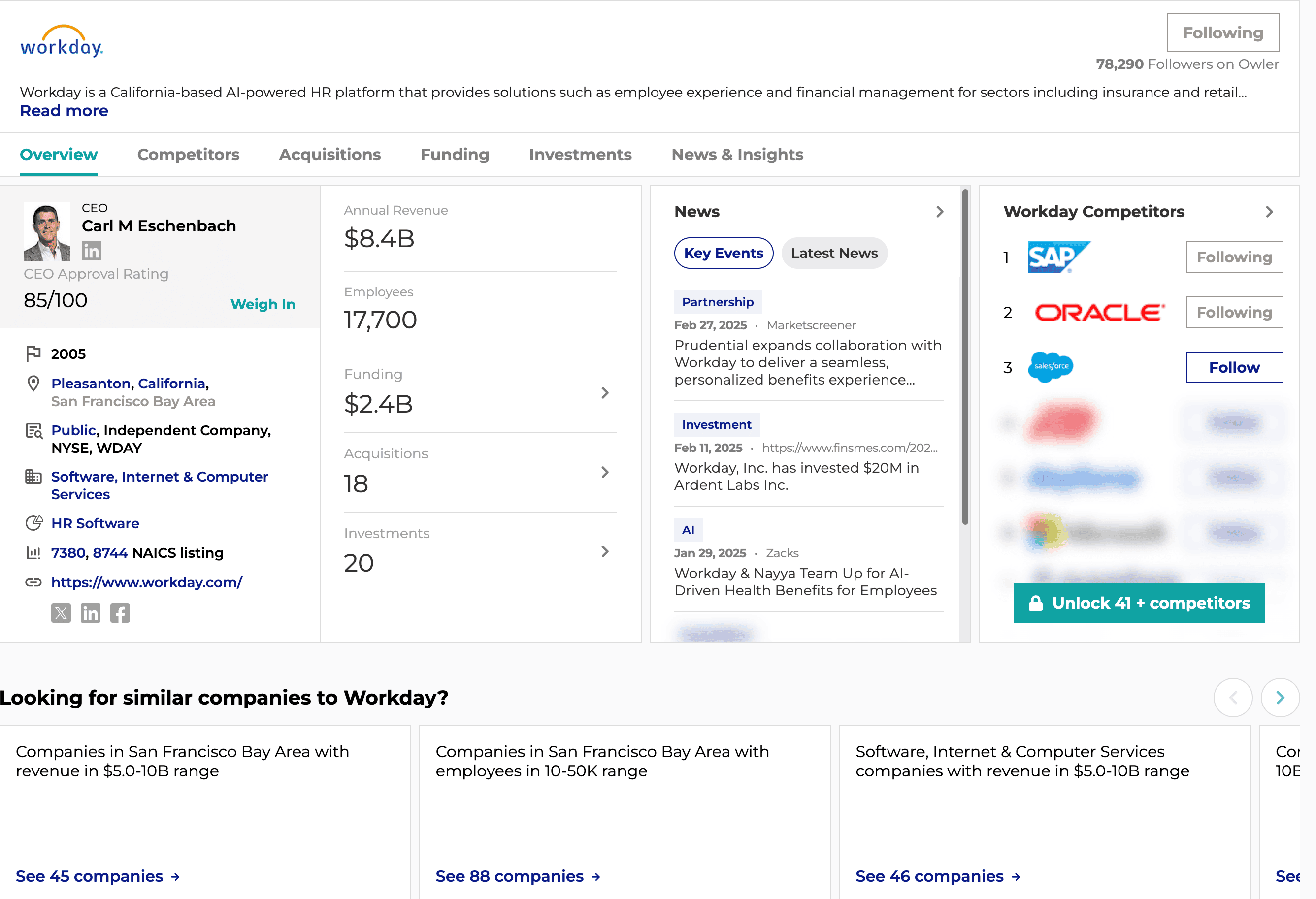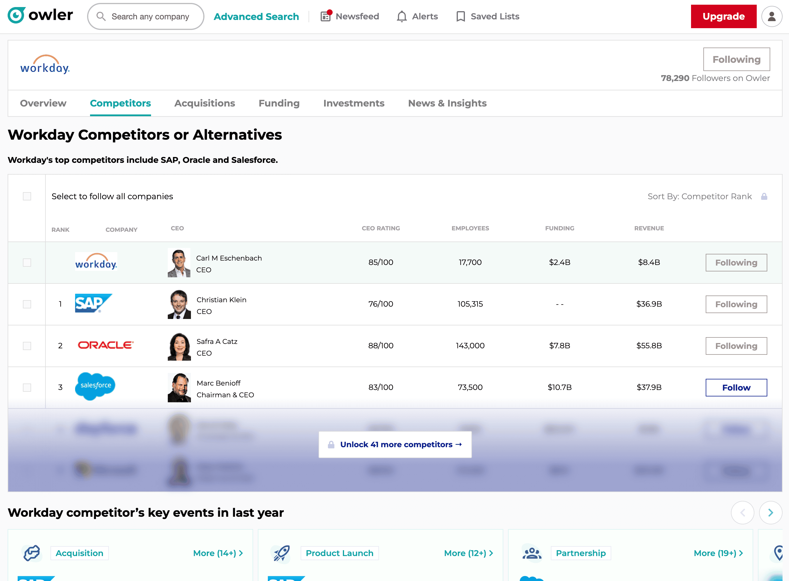 The AI-Powered Owler scraper also enables users to extract a list of competitors from any Owler competitors page. This feature is perfect for analyzing market competition.
