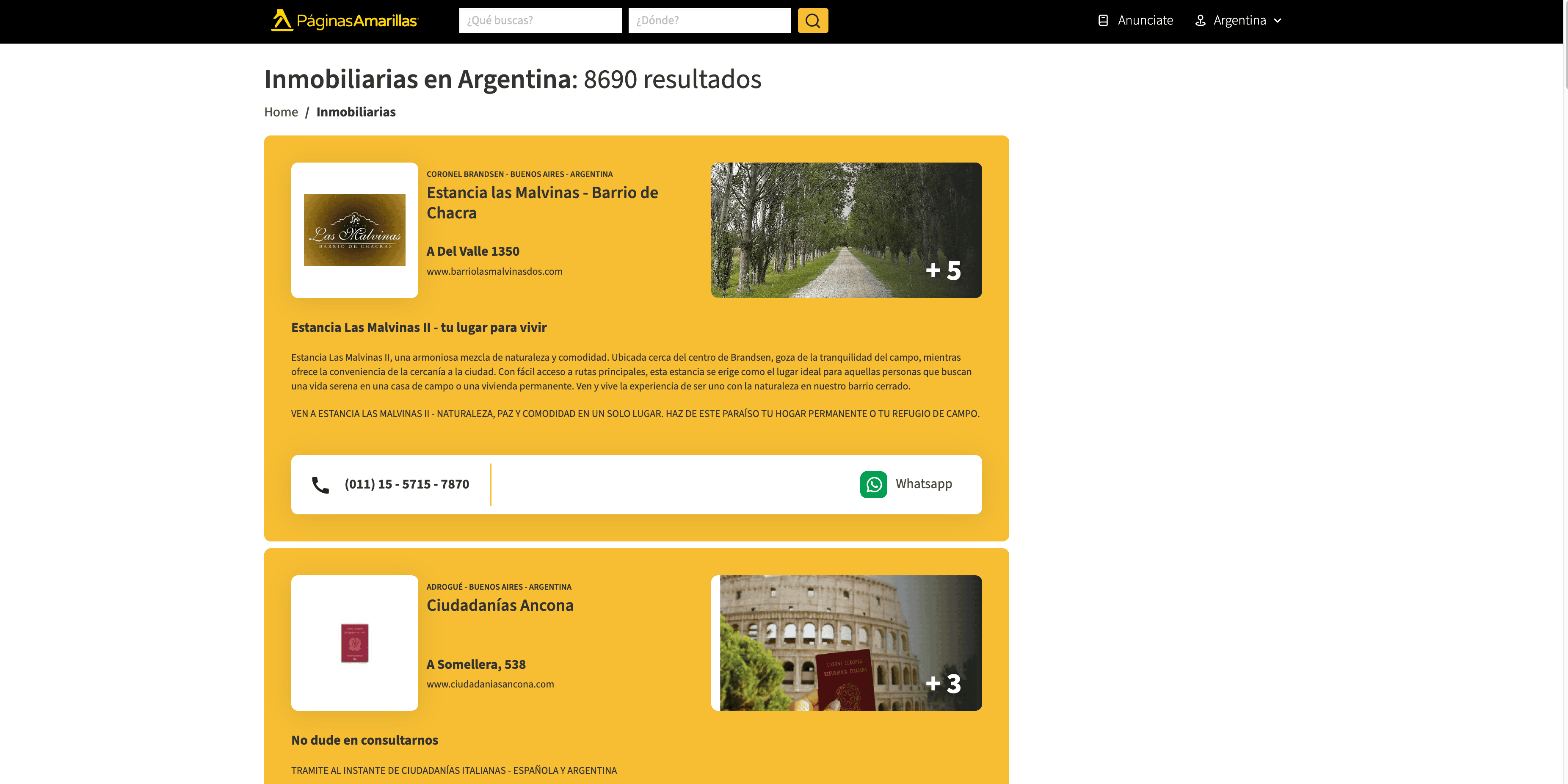 - Go to the destination page, for example: Páginas Amarillas Real Estate Search Result.