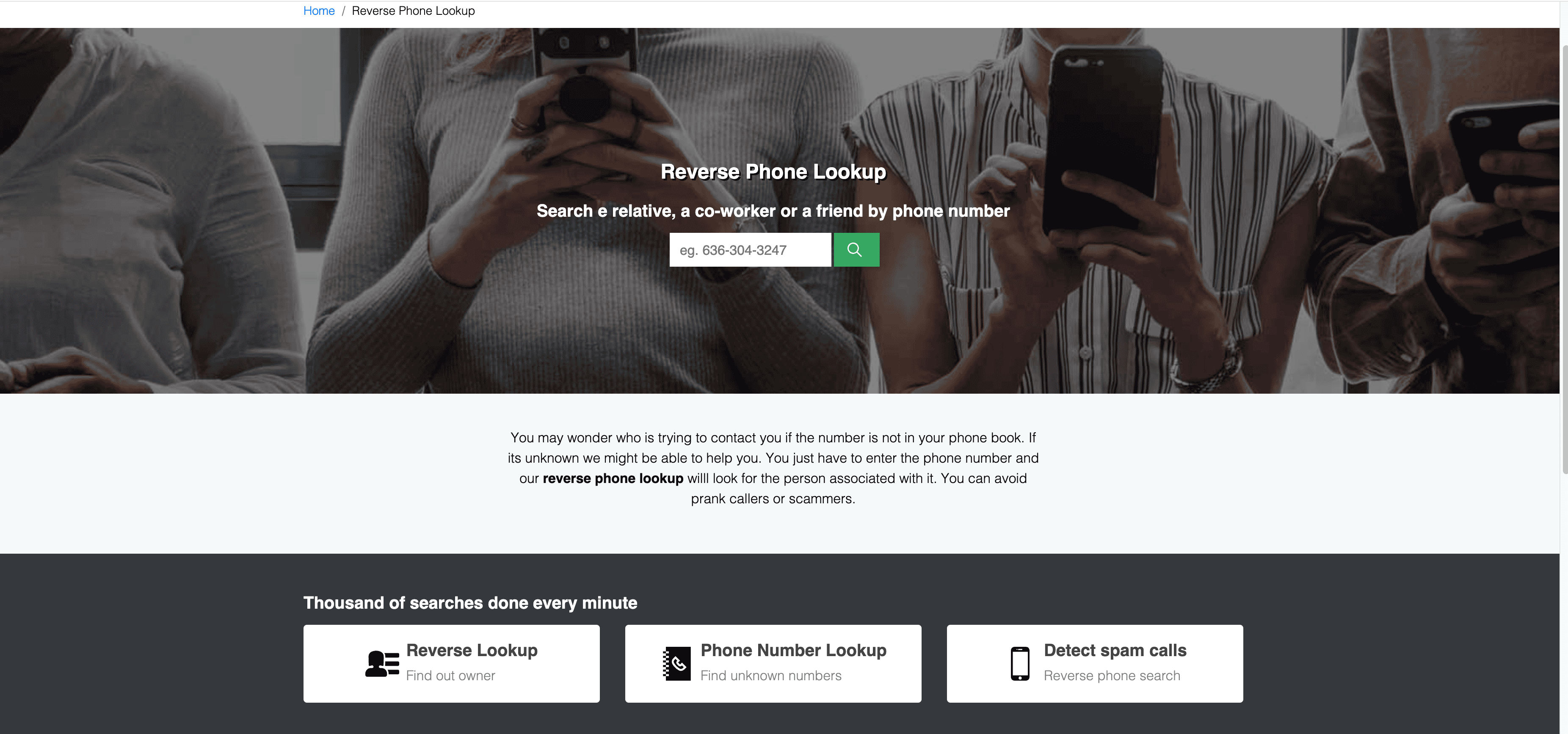 - Go to the destination page, for example: Reverse Phone Lookup Page.