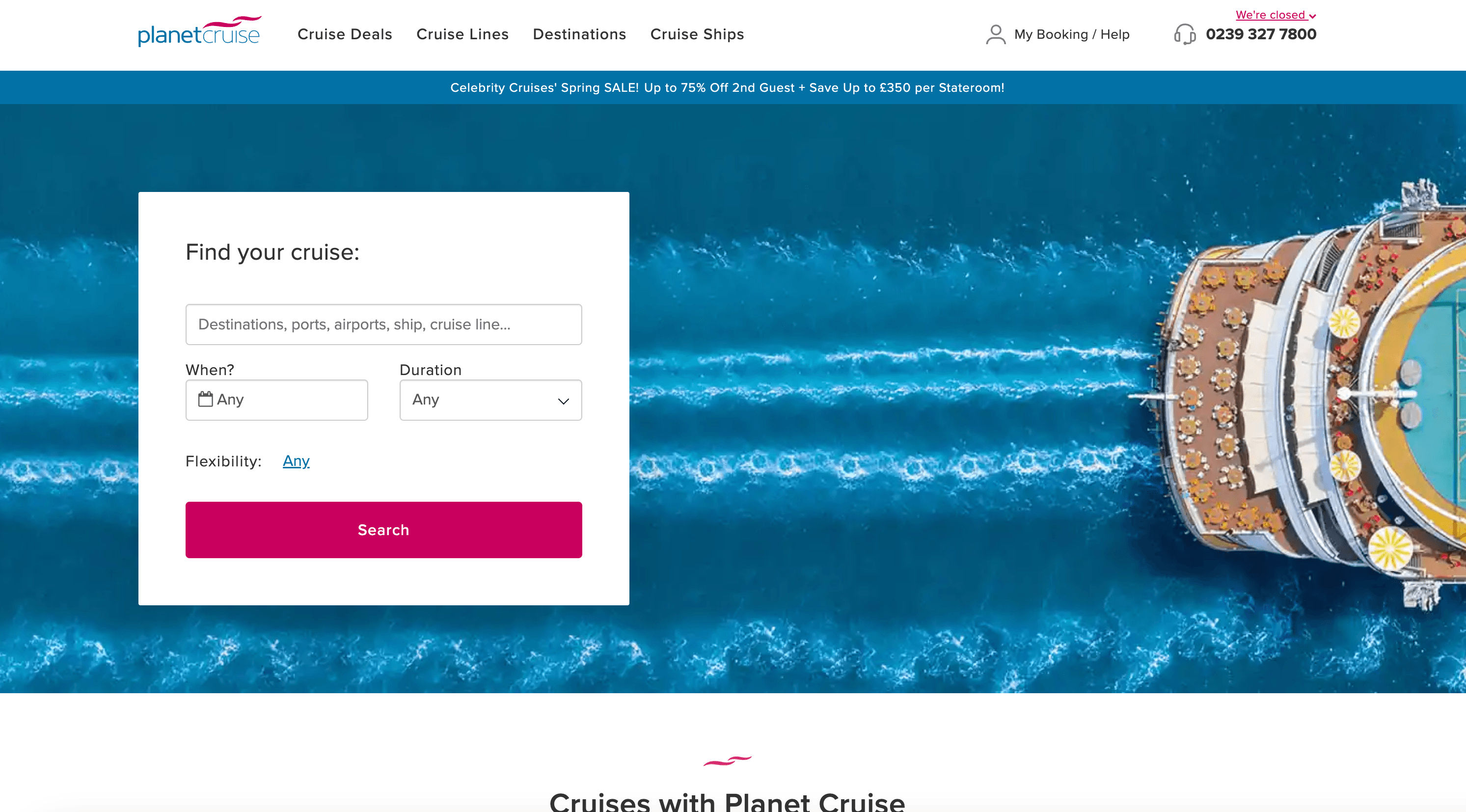 - Navigate to the Planet Cruise Search or Details Page: Go to Planet Cruise Search Results or any cruise details page.