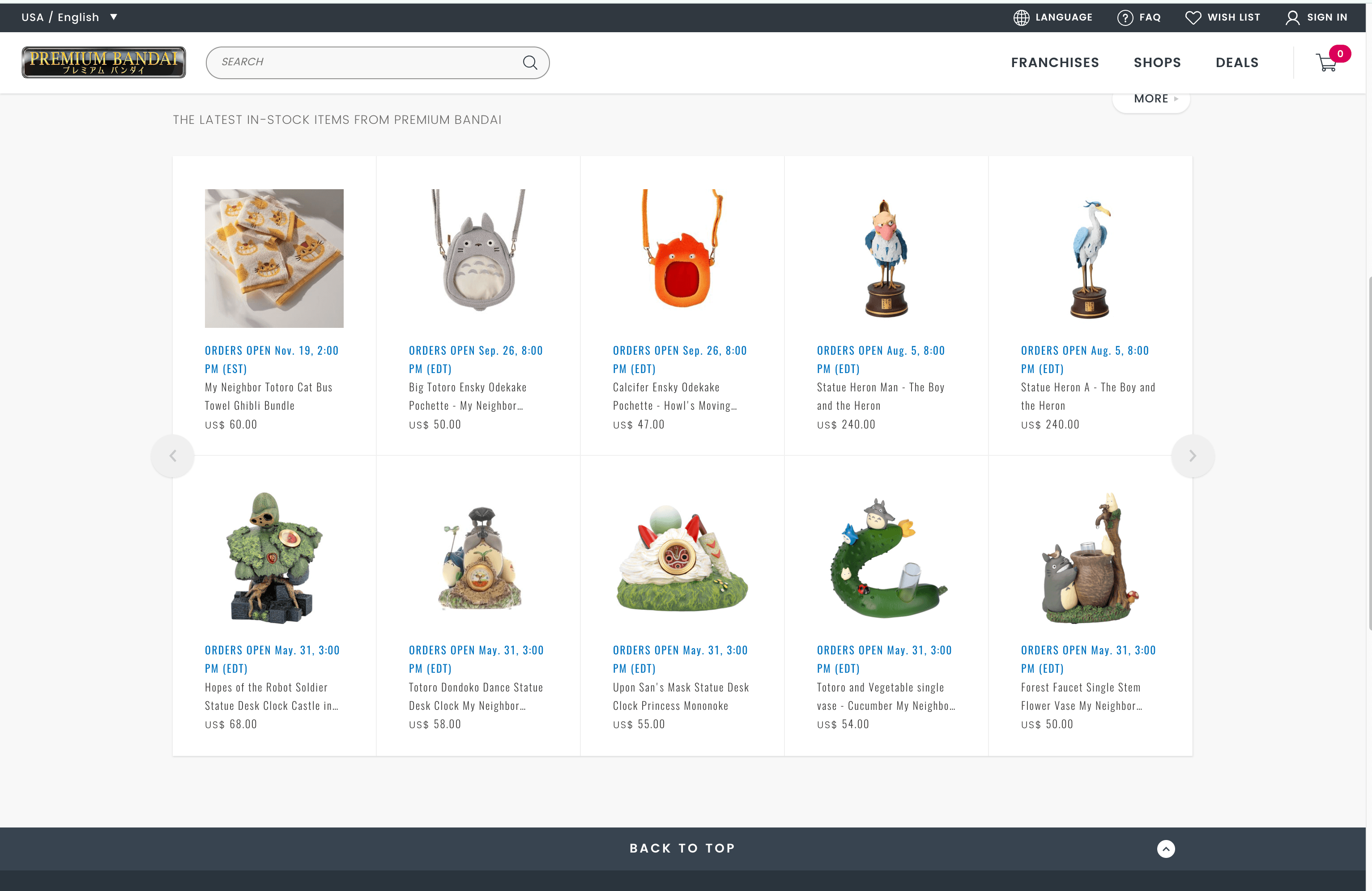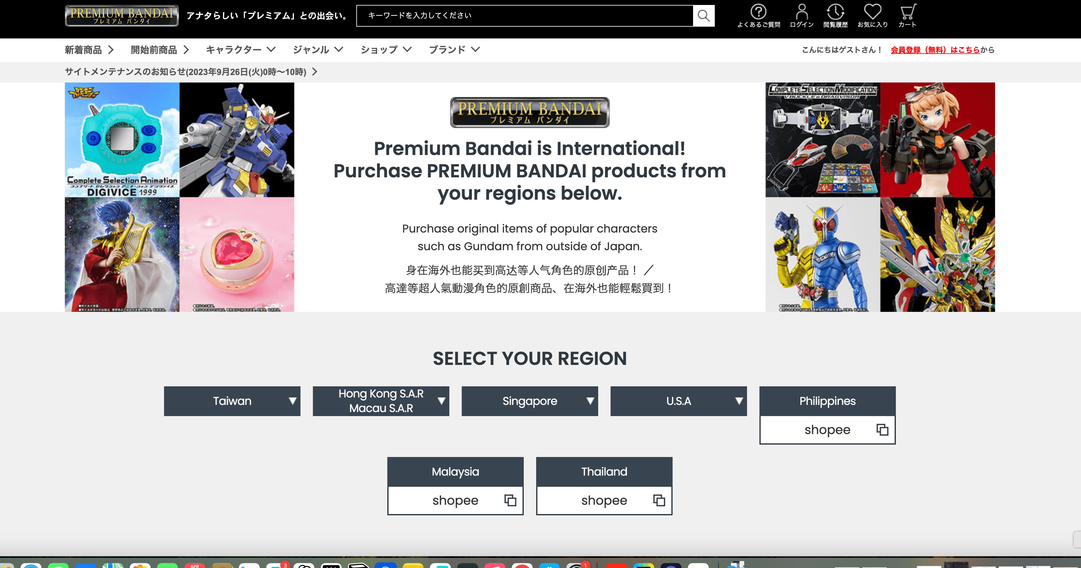 - Go to the PREMIUM BANDAI products listing page.
