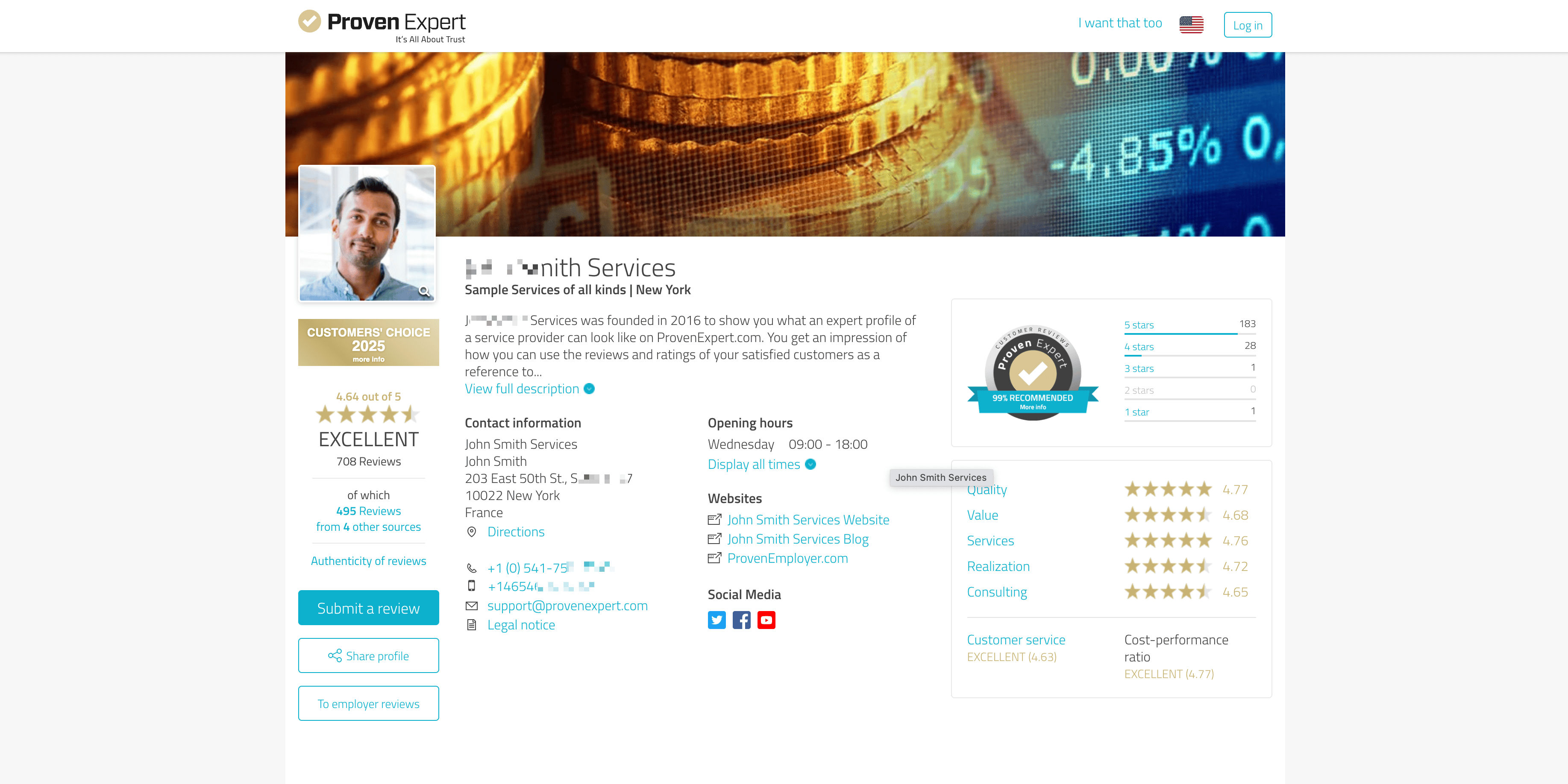 - Go to the destination page, for example: ProvenExpert Business Profile.