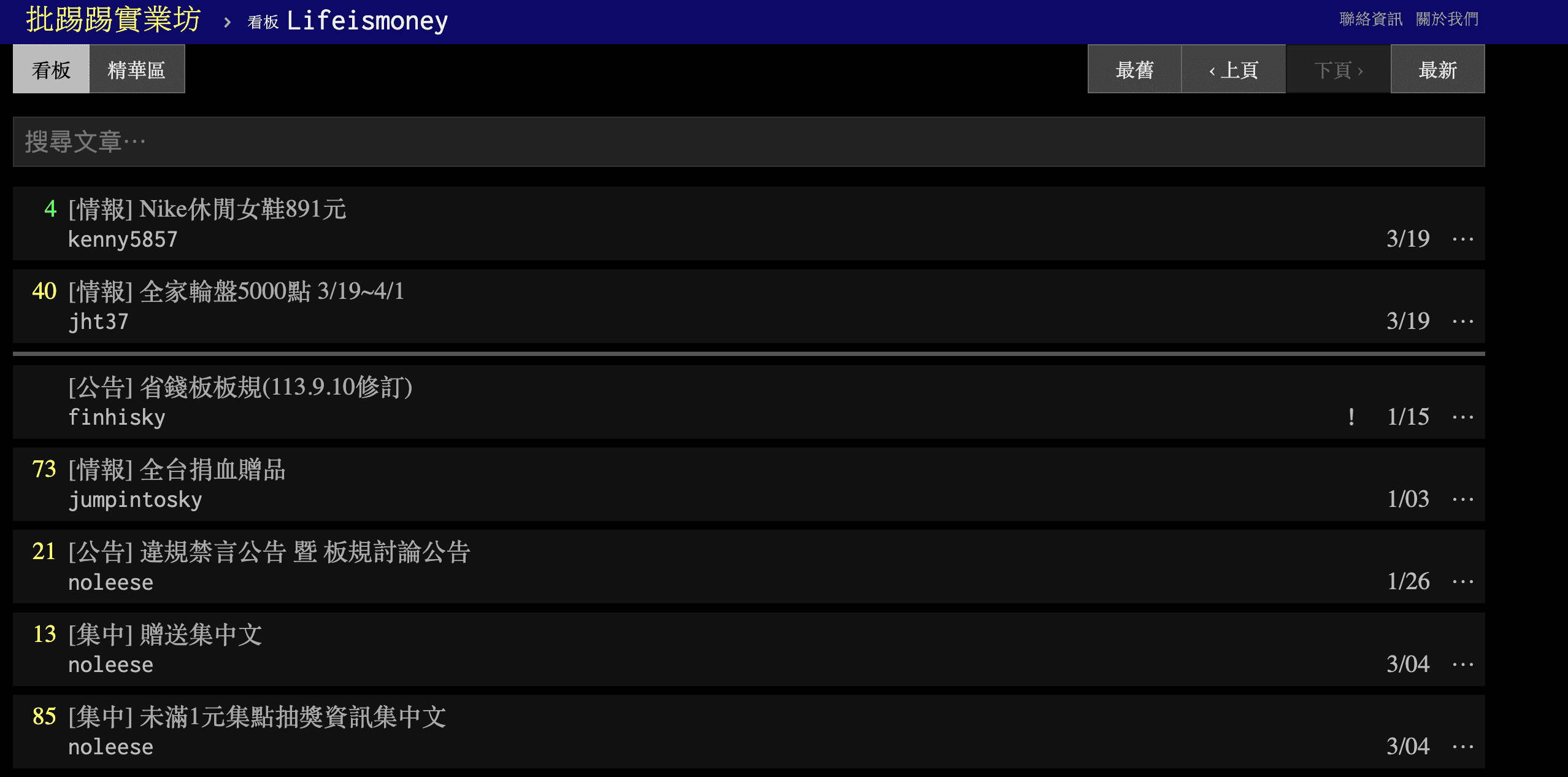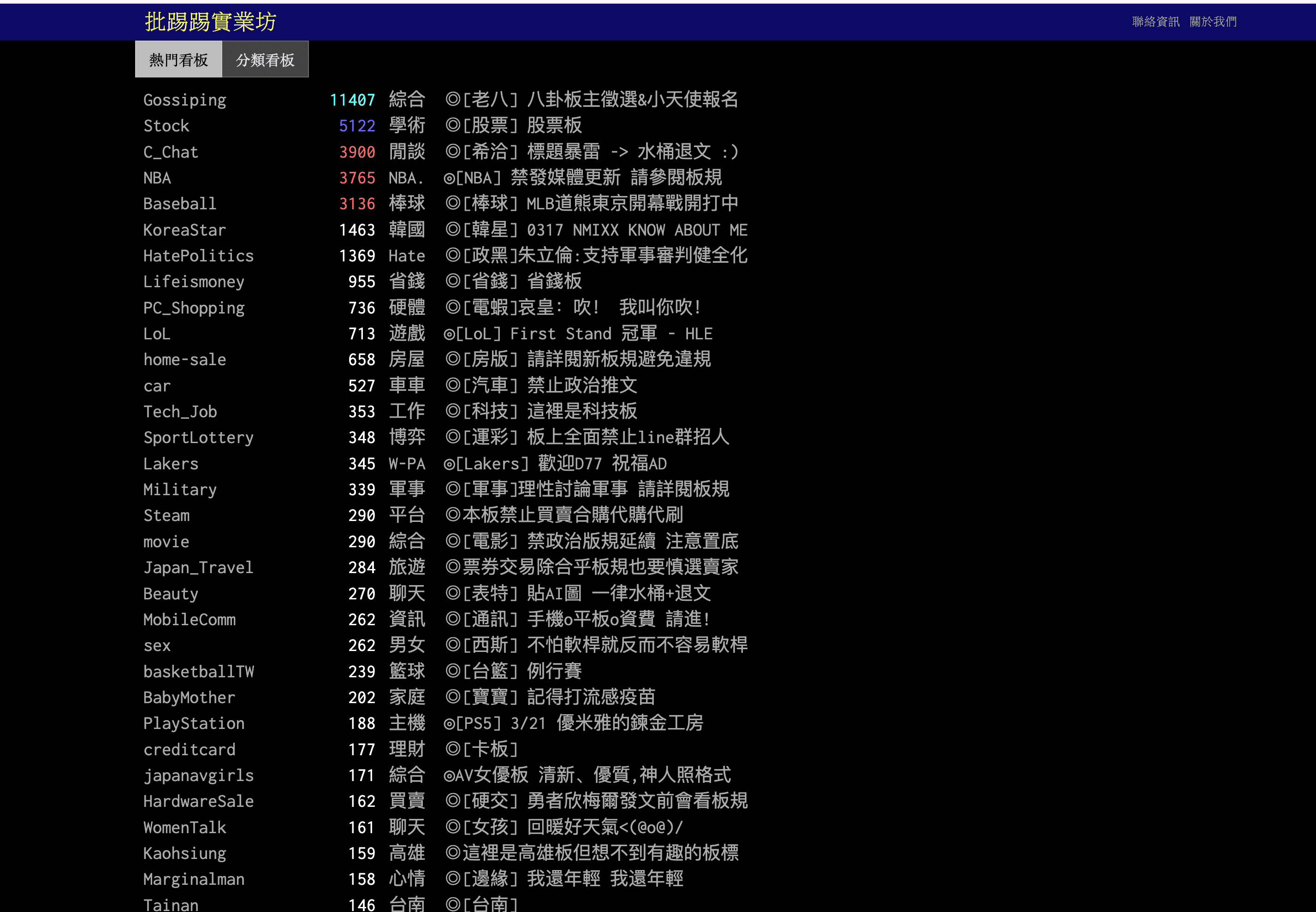 - Navigate to the Popular Boards or Post Page: Go to the Ptt page you want to scrape.