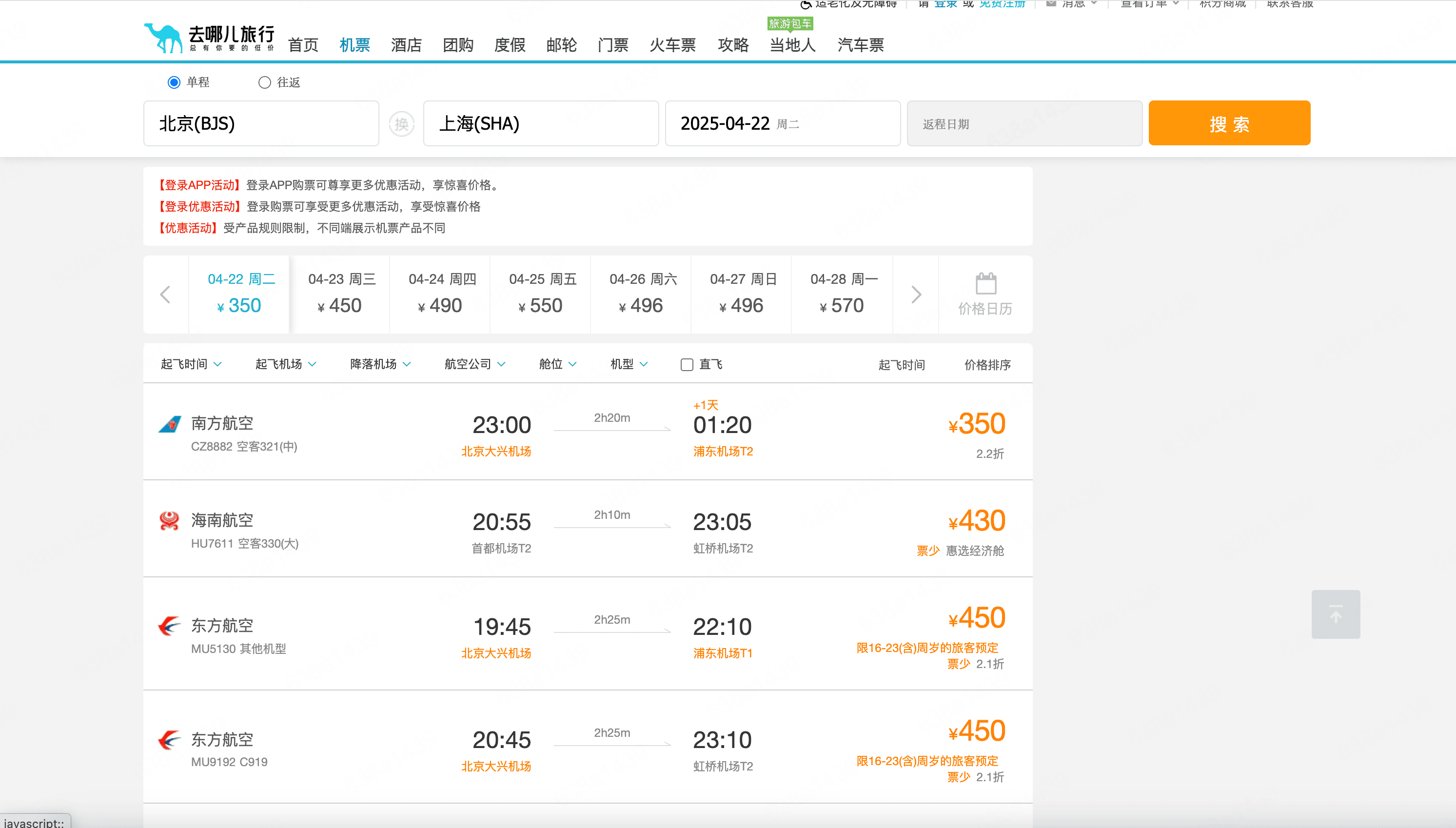 - Go to the destination page, for example: Qunar Flights Search Result.