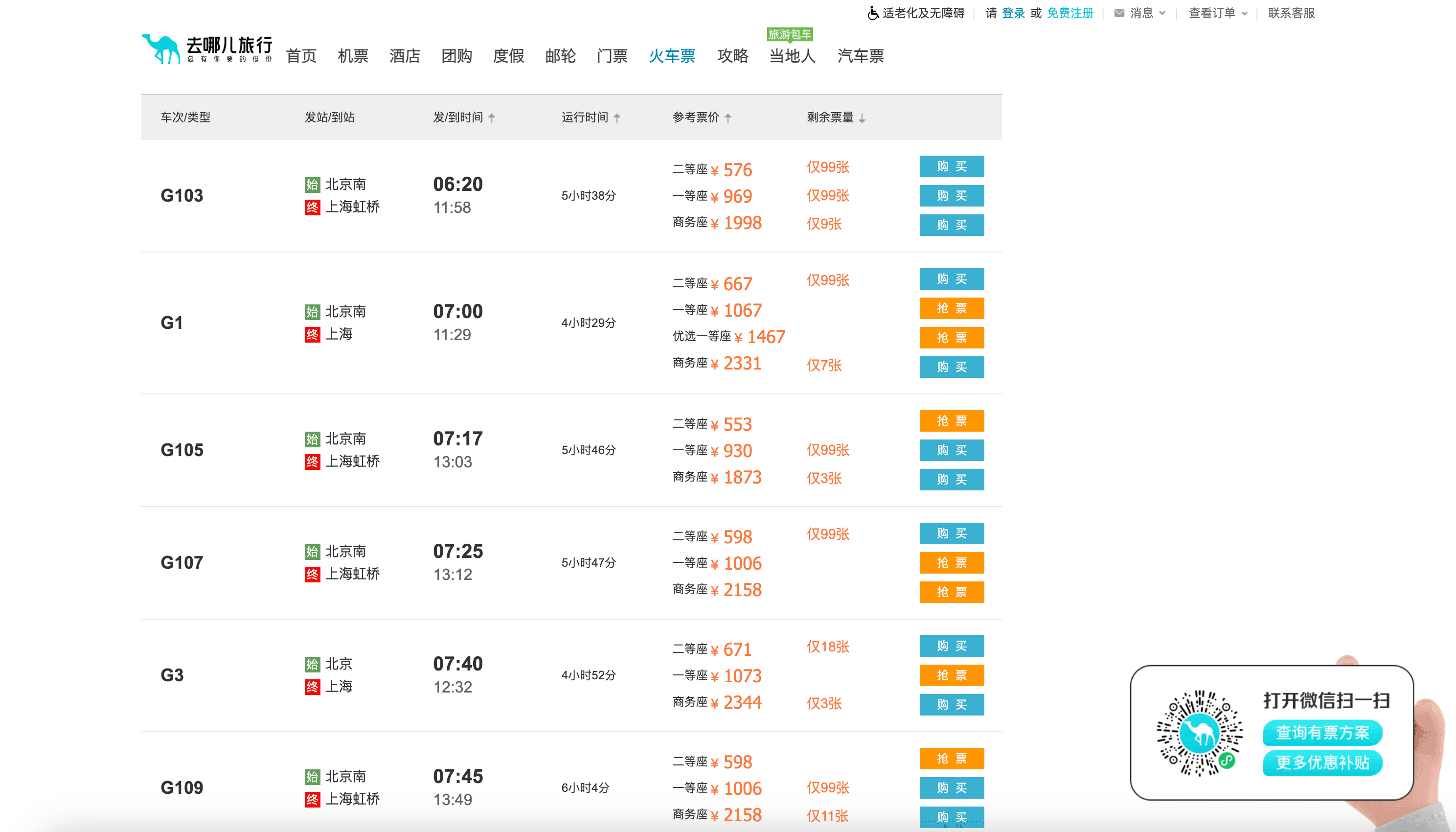 - Go to the destination page, for example: Qunar Trains Search Result.