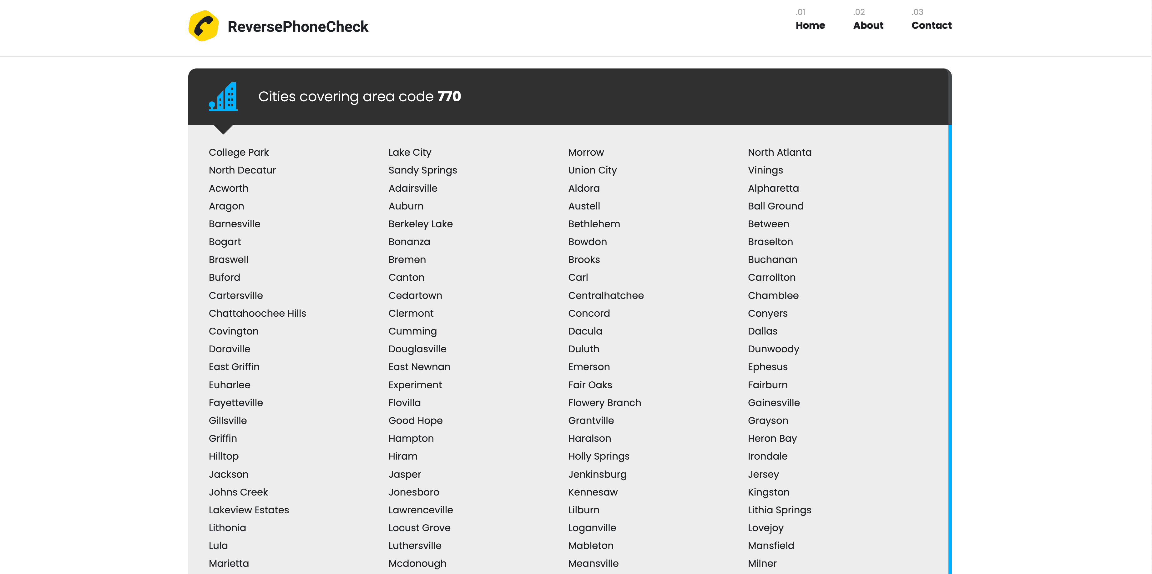- Go to the destination page, for example: ReversePhoneCheck Area Code Details.