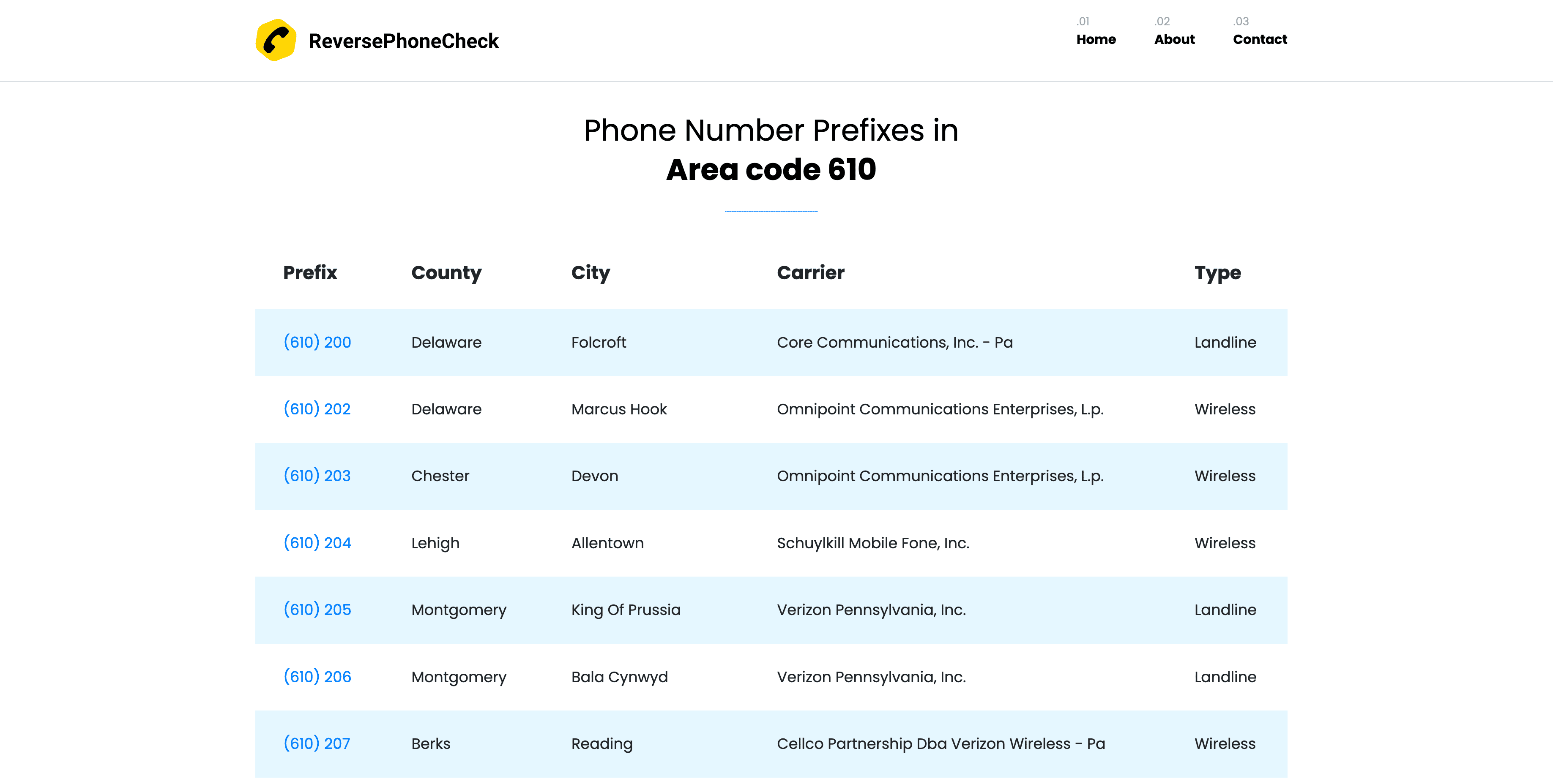 - Go to the destination page, for example: ReversePhoneCheck Phone Number Prefixes.