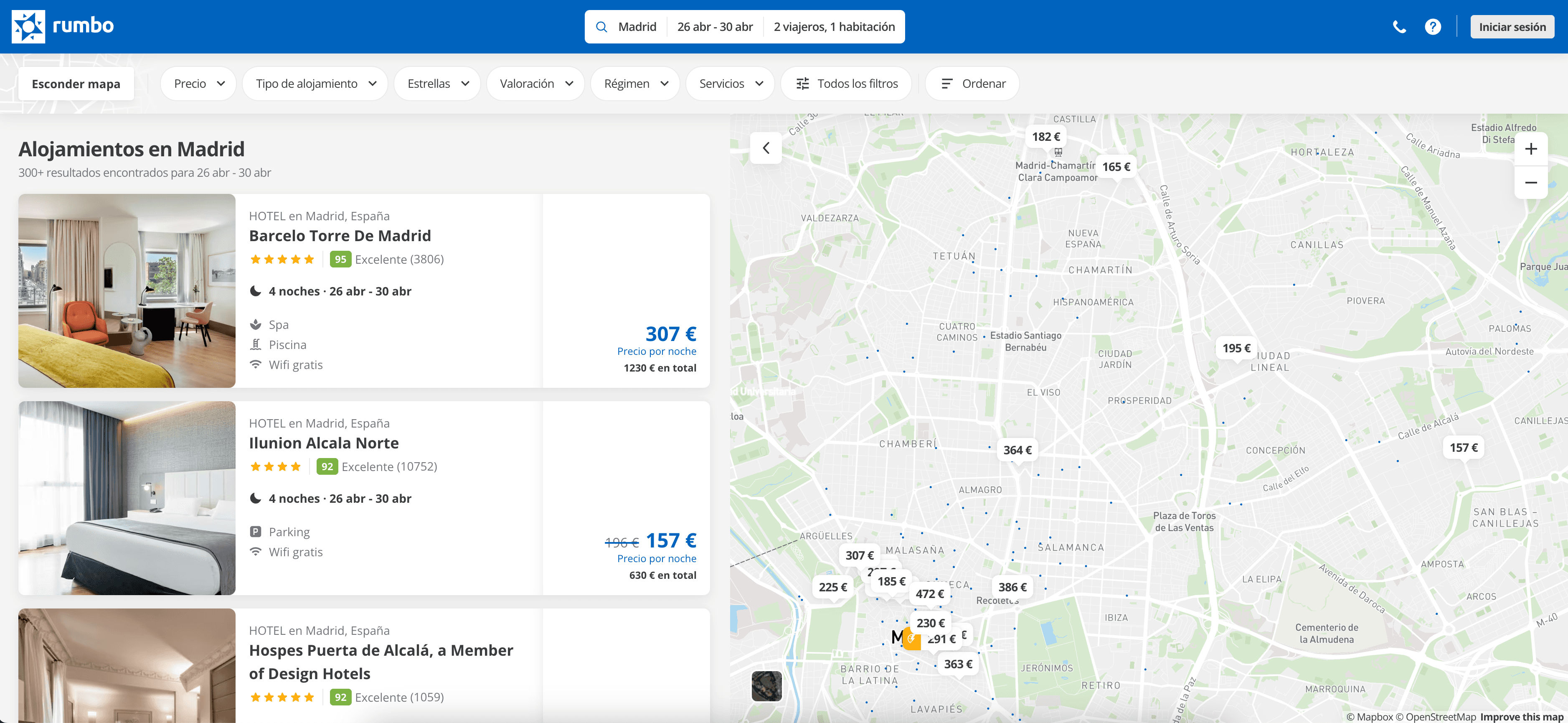 - Go to the Rumbo hotel search result page.