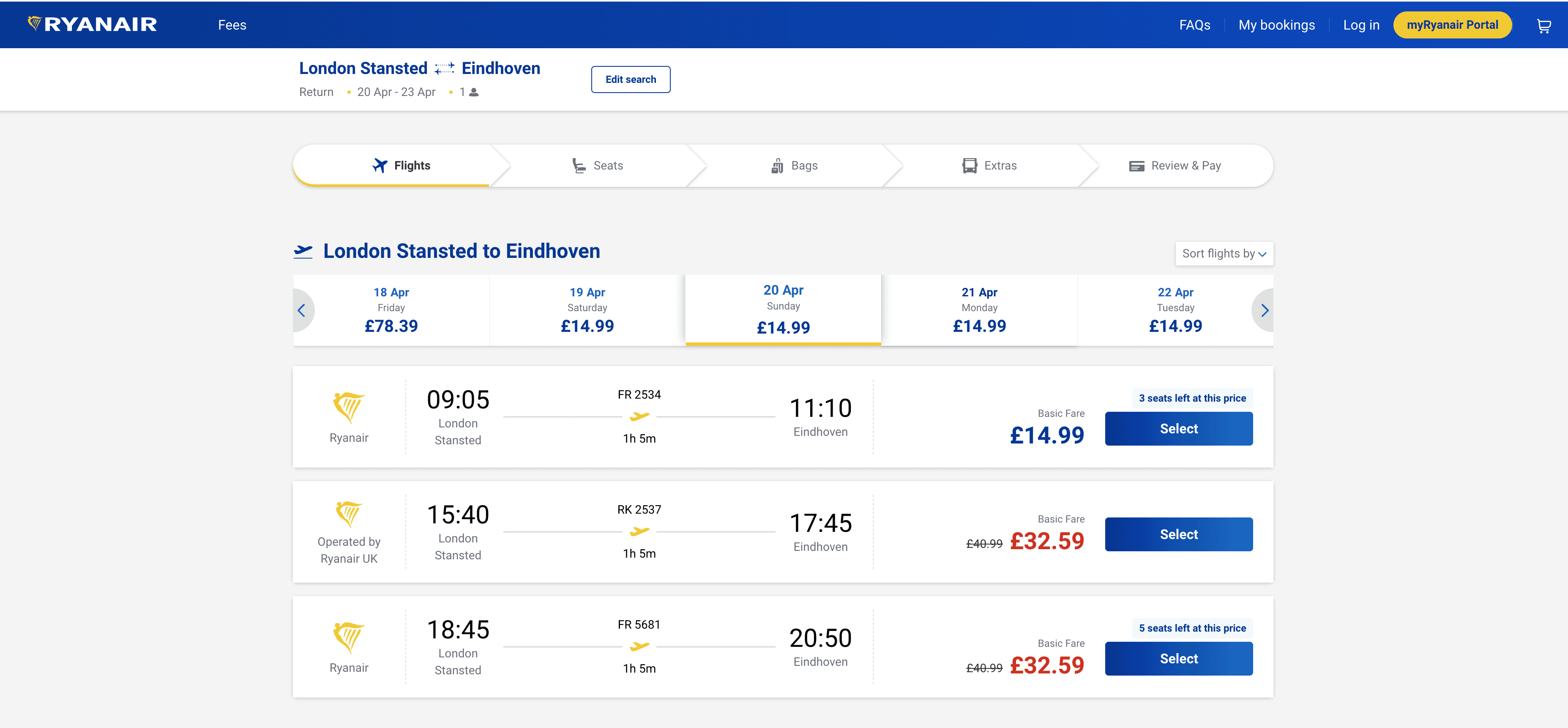Scrape Ryanair Flight Search Result Page