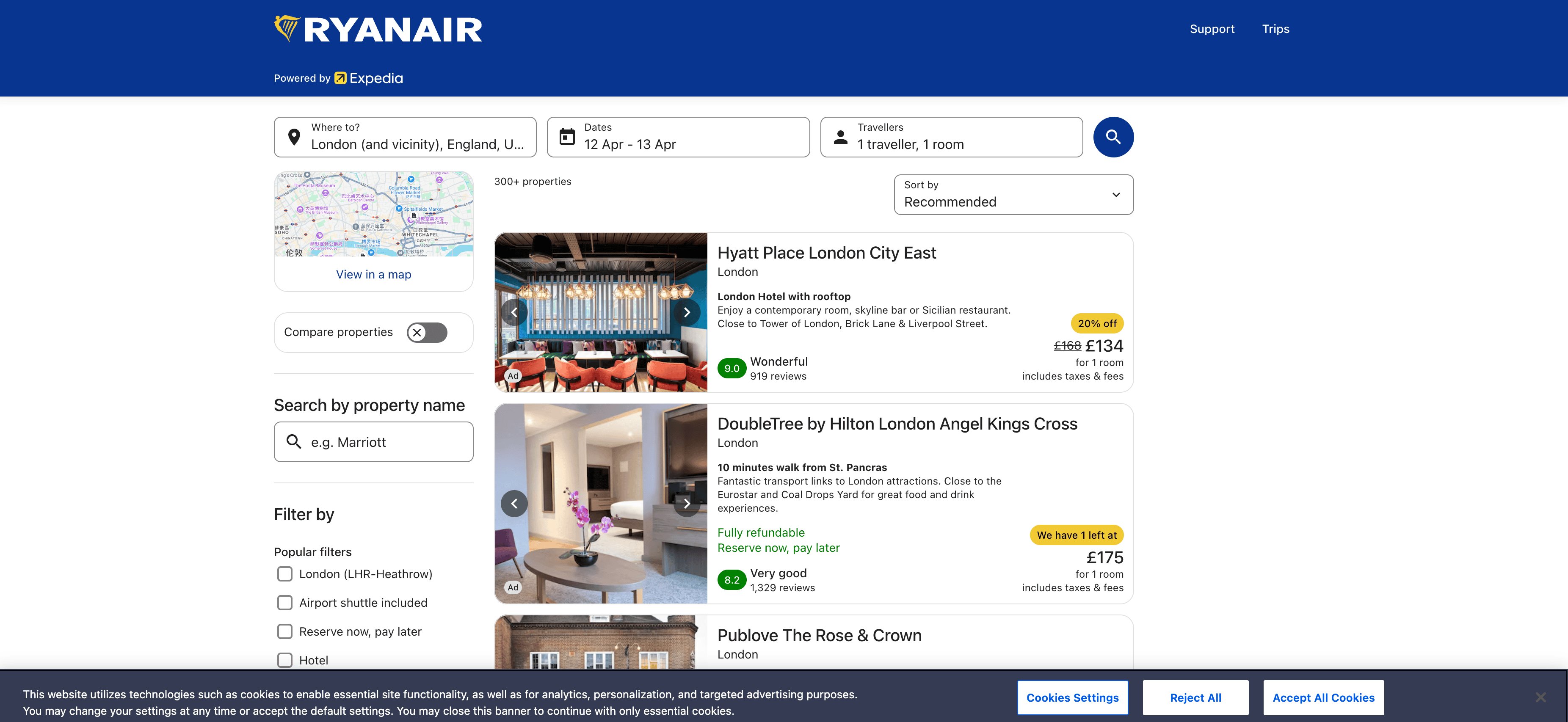 - Go to the destination page, for example: Ryanair Hotel Search Result Page.