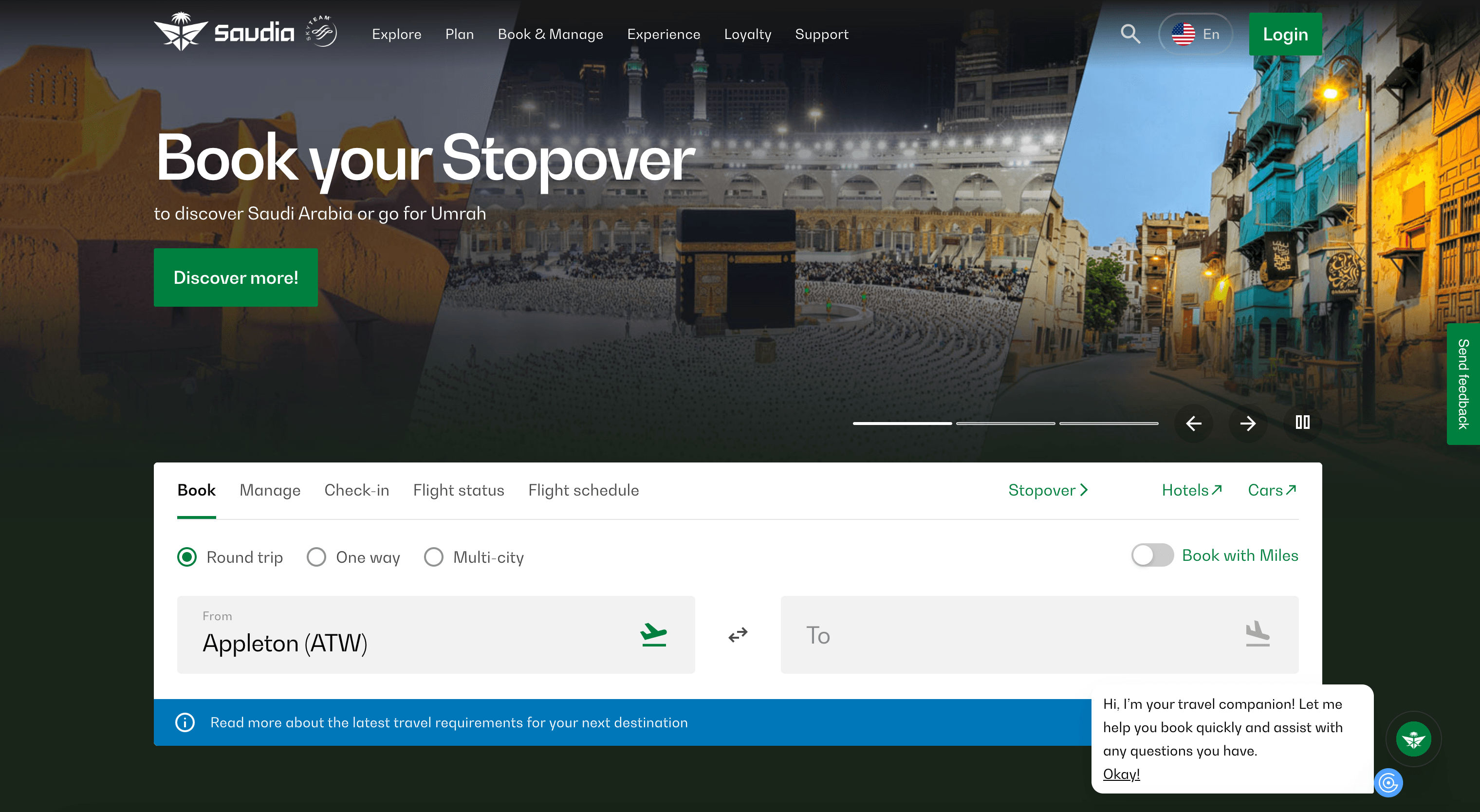 - Go to the destination page, for example: Saudia Flights Search Result Page.