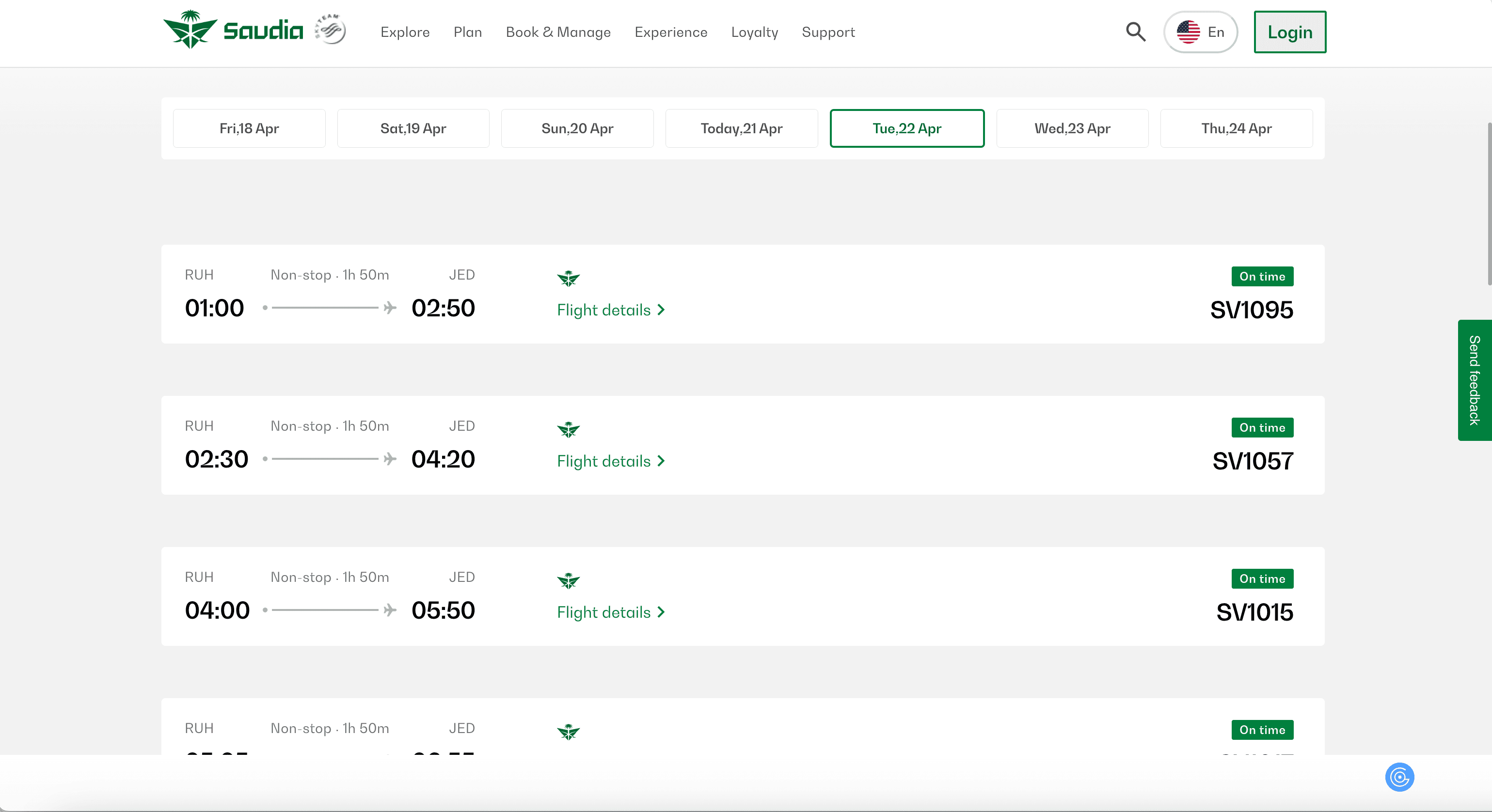 - Go to the destination page, for example: Saudia Flights Status Search Result Page.