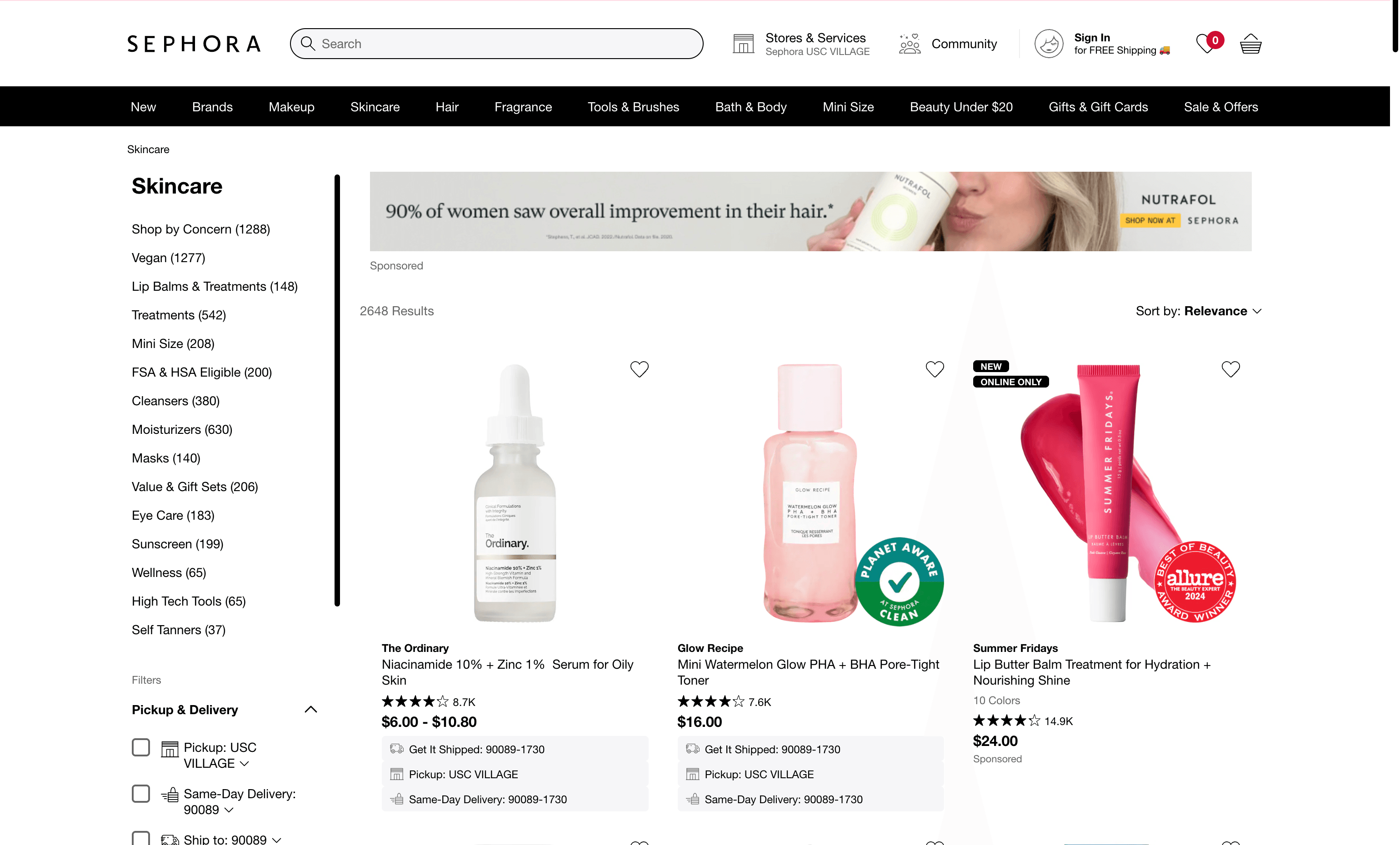 - Navigate to Sephora Listings or Product Details Page: Go to the Sephora Skincare Listings or any Sephora Product Details page.