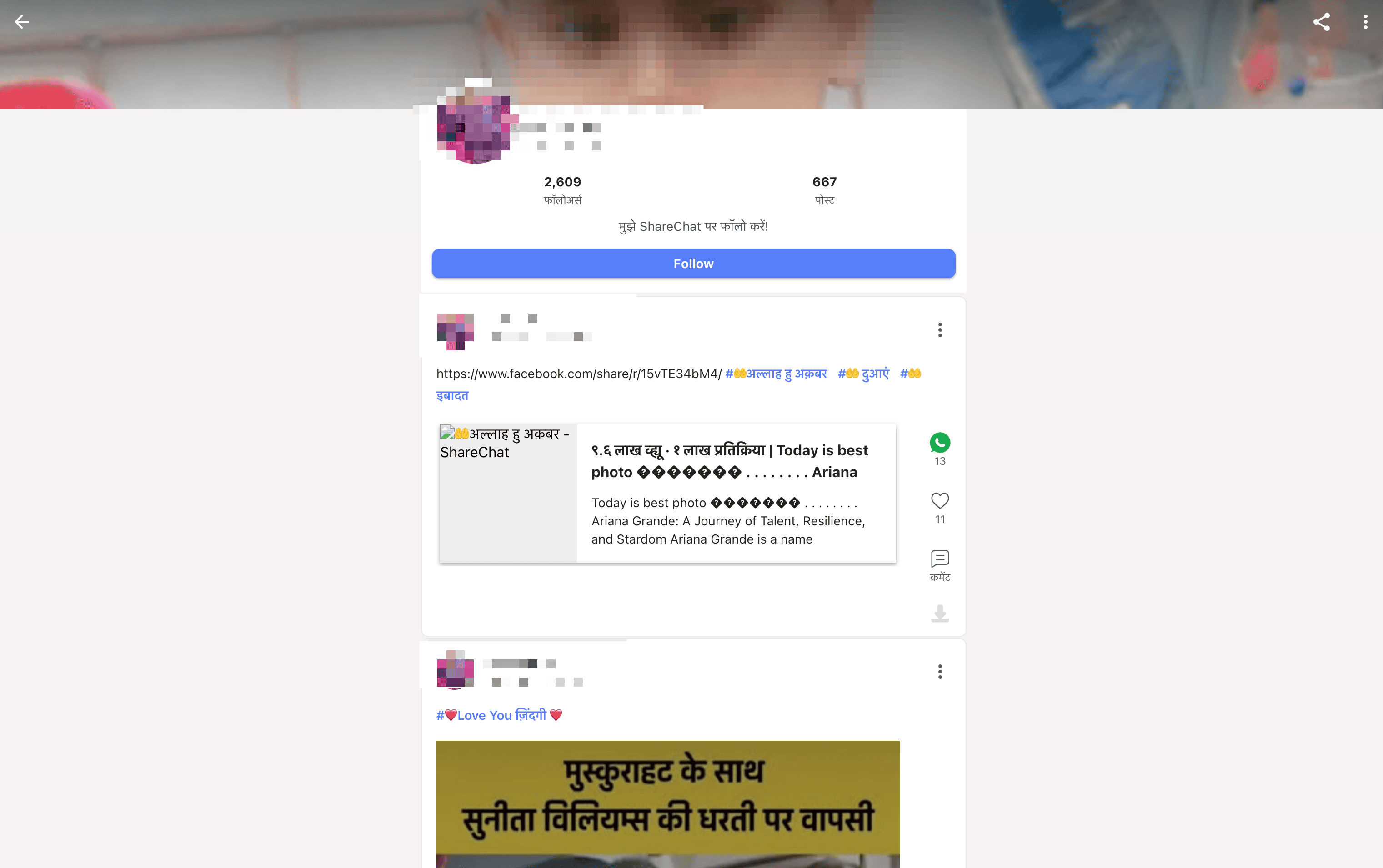 - Go to the destination page, for example: ShareChat Profile Details.