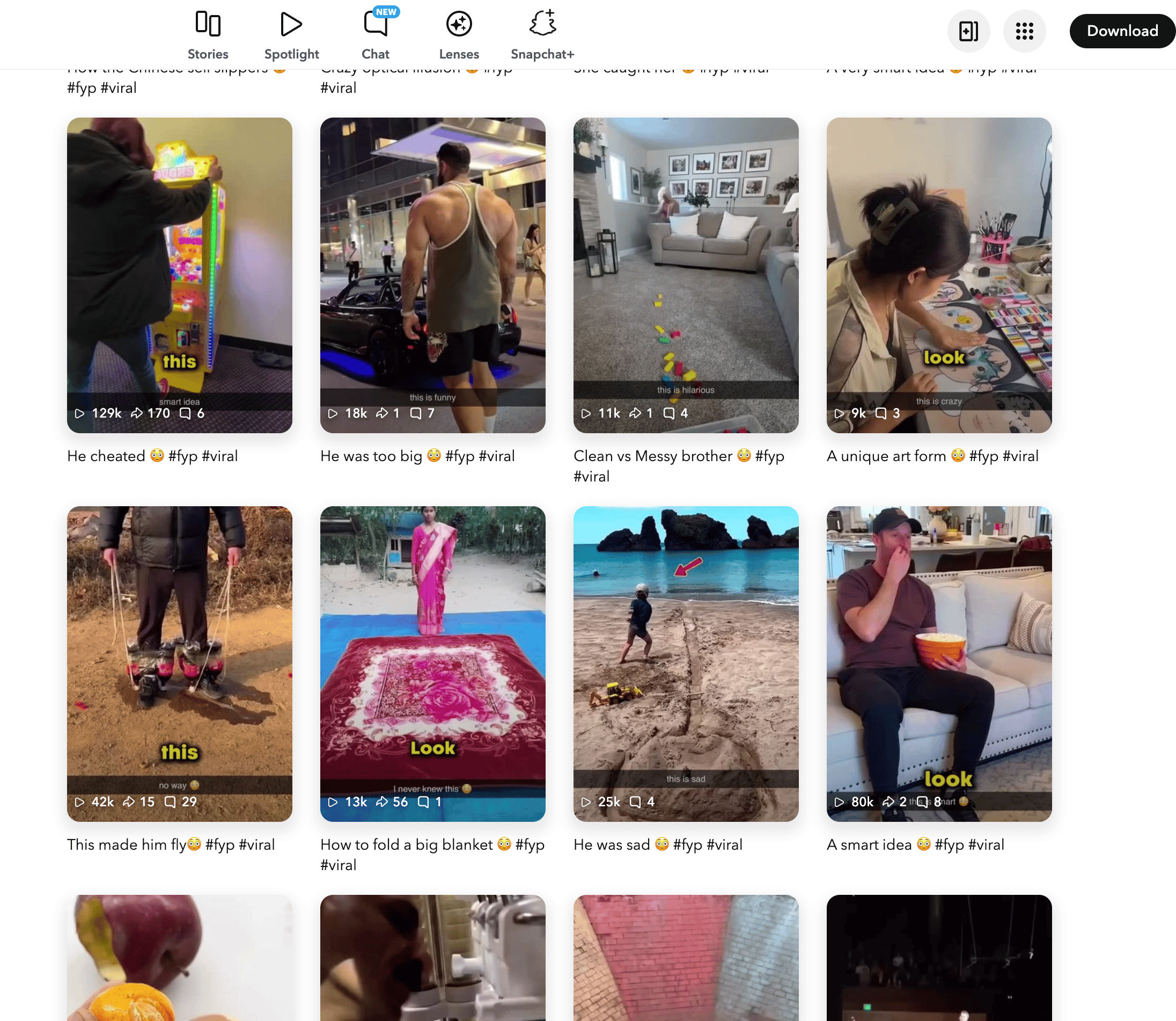 - Go to the destination page, for example: Snapchat User's Works List.