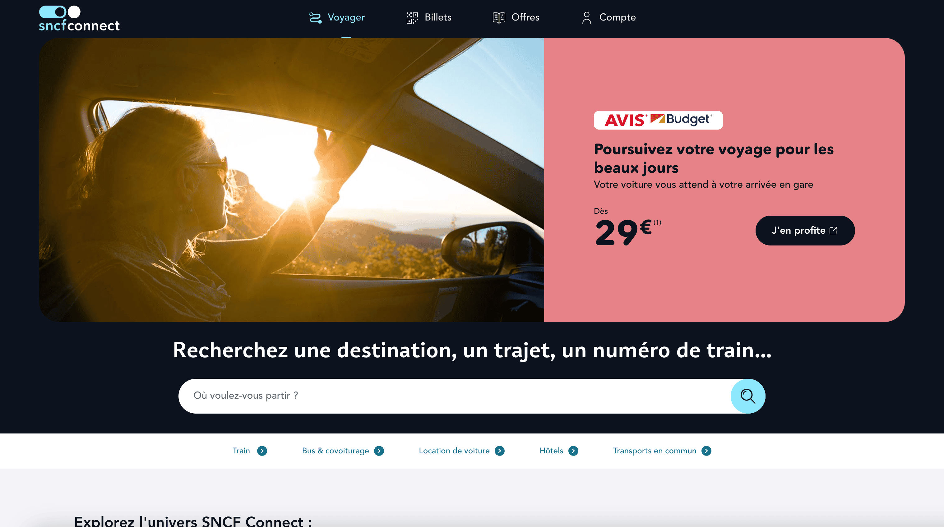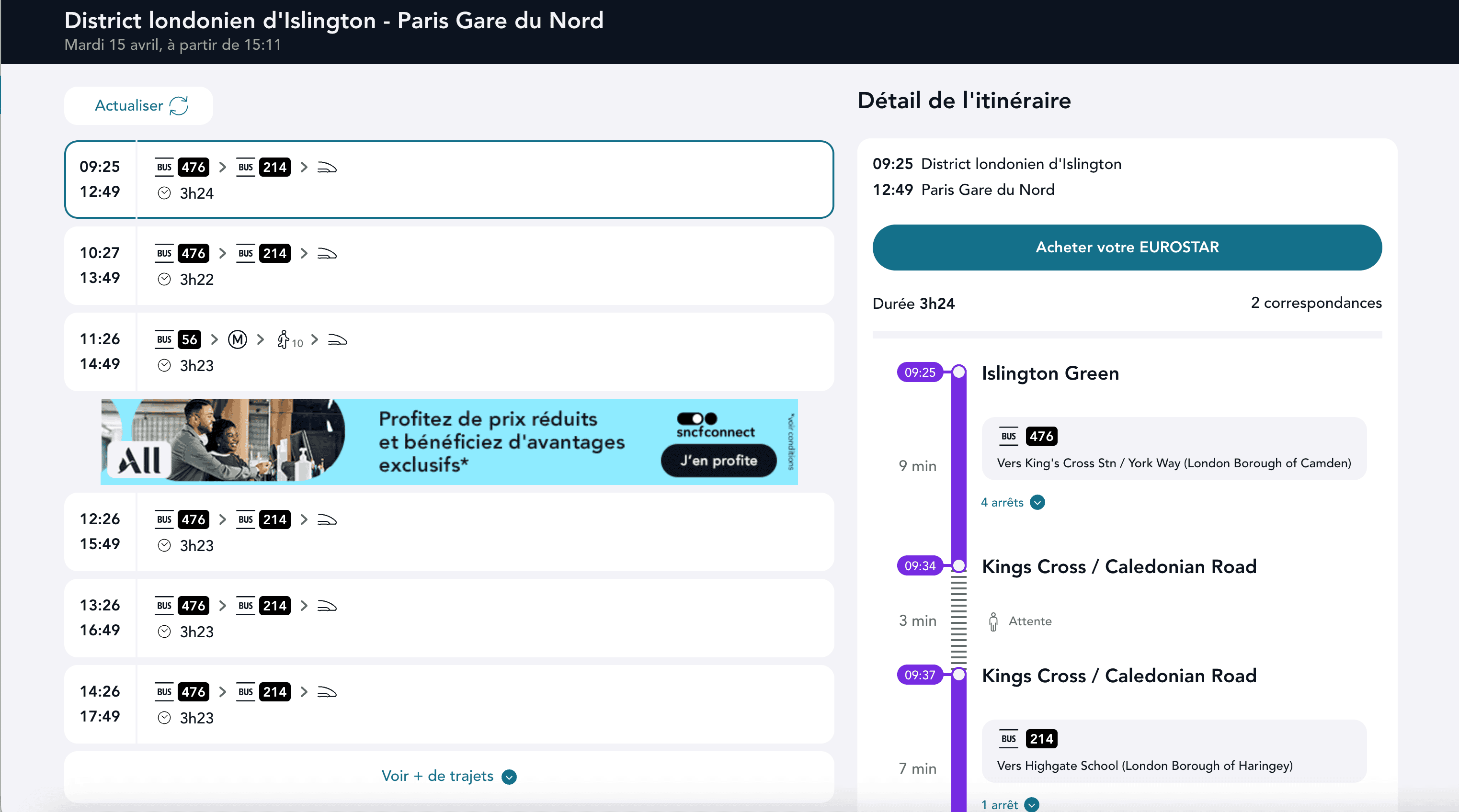 - Go to the destination page, for example: SNCF Connect Trains Search Result.