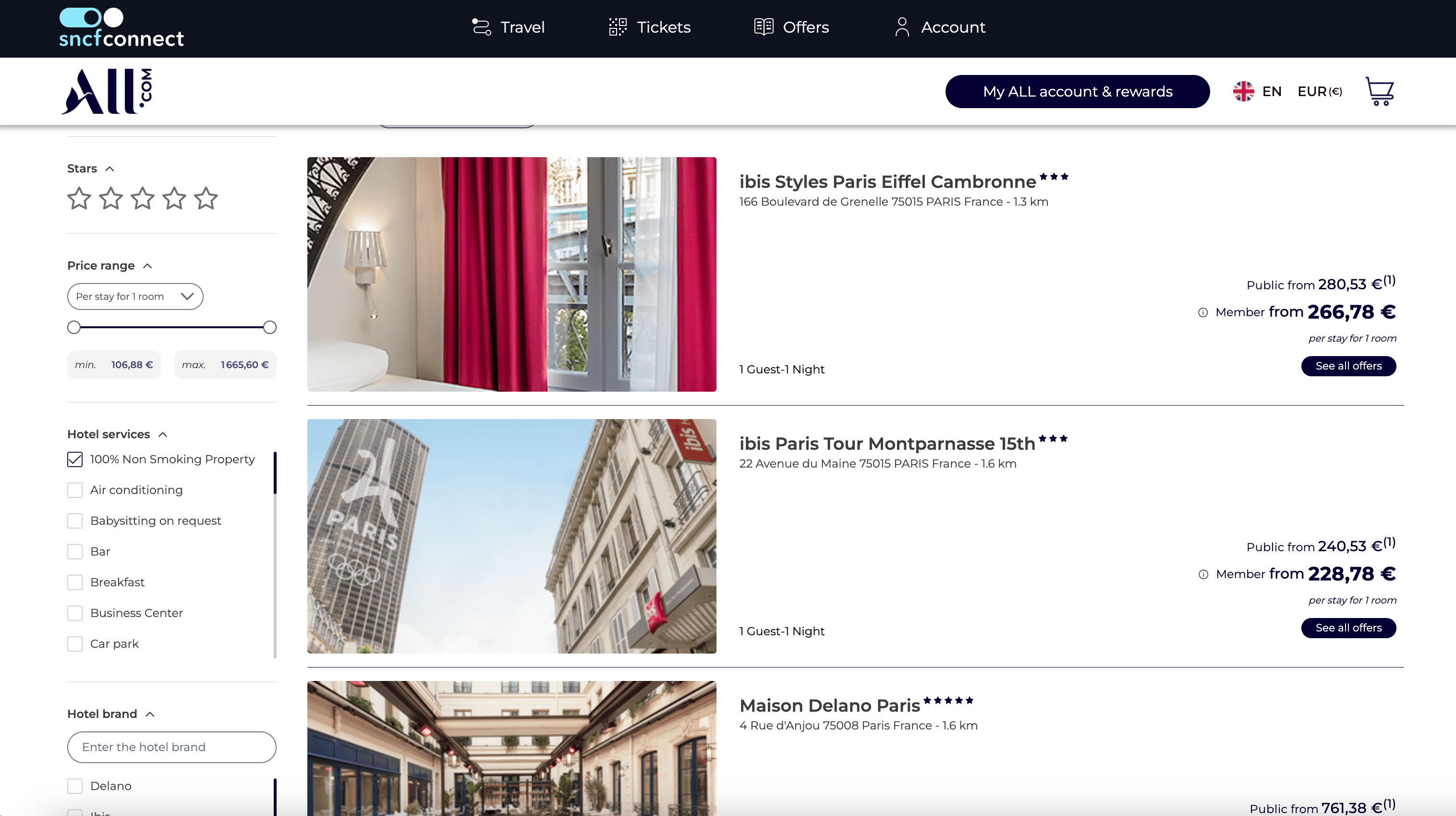 - Go to the destination page, for example: SNCF Connect Hotels Search Result.