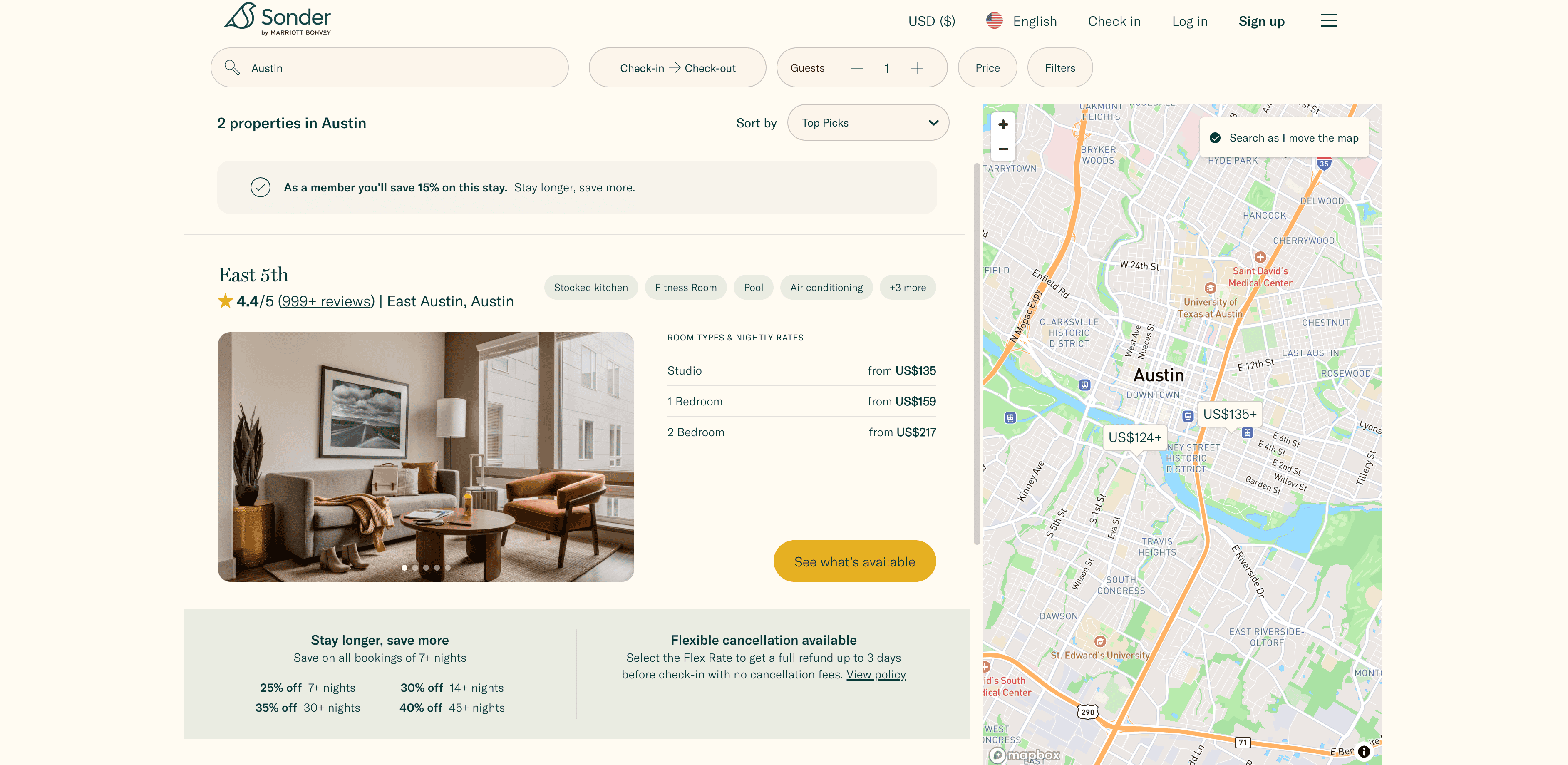 - Go to the destination page, for example: Sonder Hotel Search Result Page.