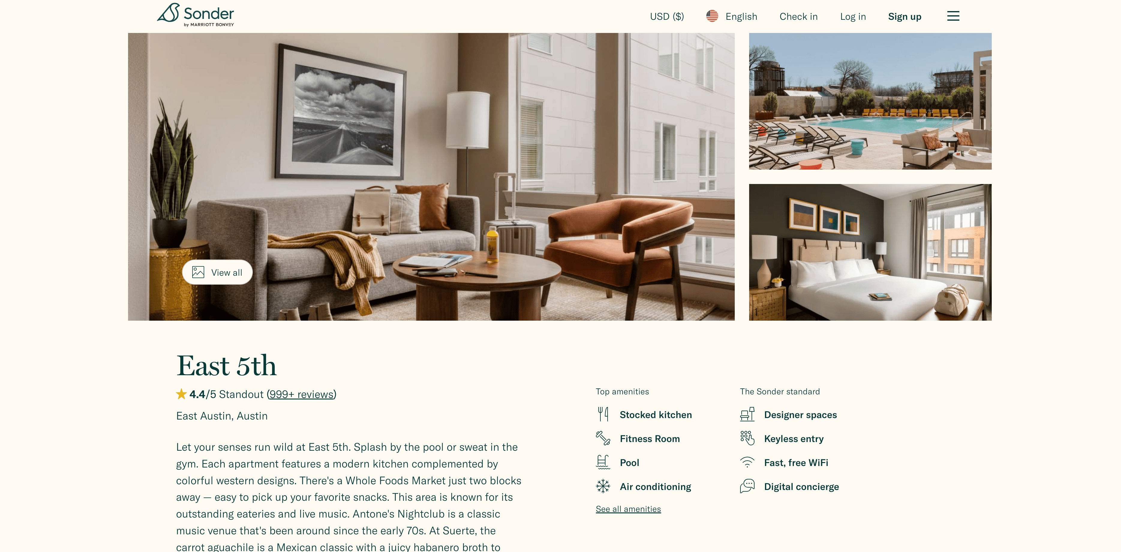 - Go to the destination page, for example: Sonder Hotel Details Page.