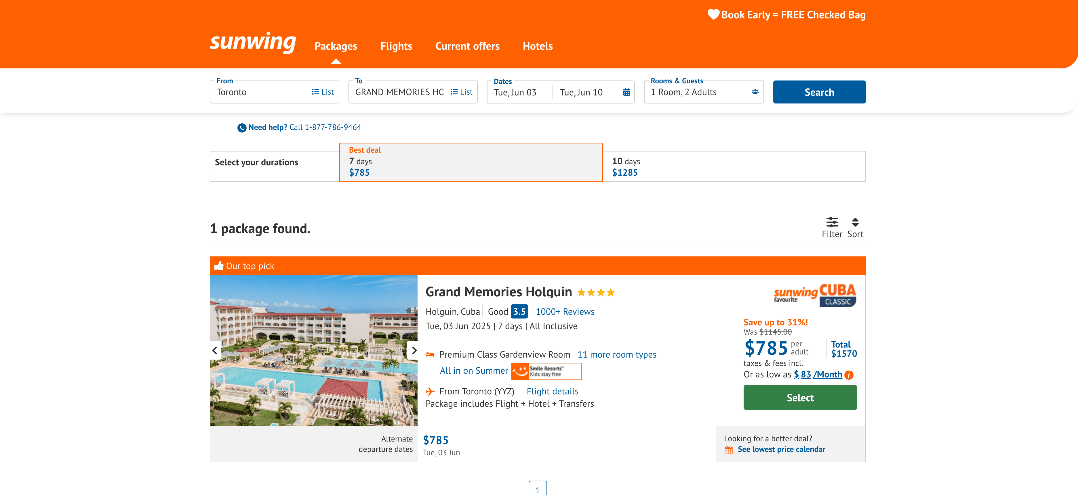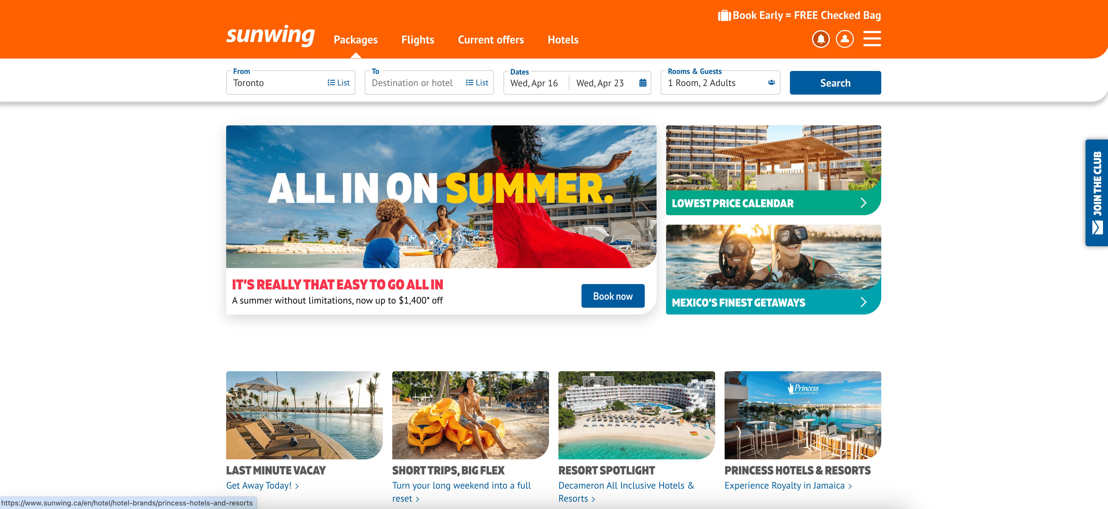 - Go to the destination page, for example: Sunwing Vacation Package Search Result Page.