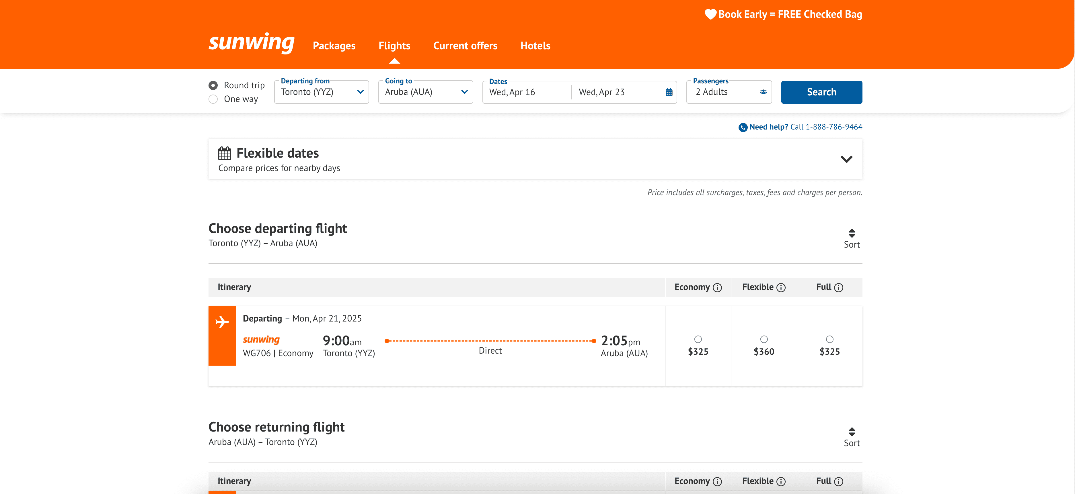 - Go to the destination page, for example: Sunwing Flight Search Result Page.