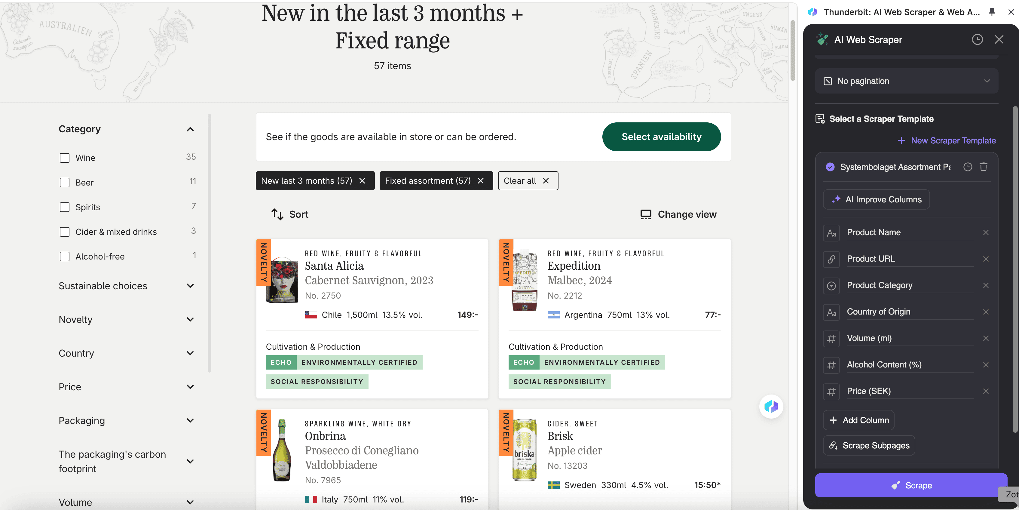 - Navigate to Systembolaget Pages: Go to the new arrivals or product SKU page you want to scrape.