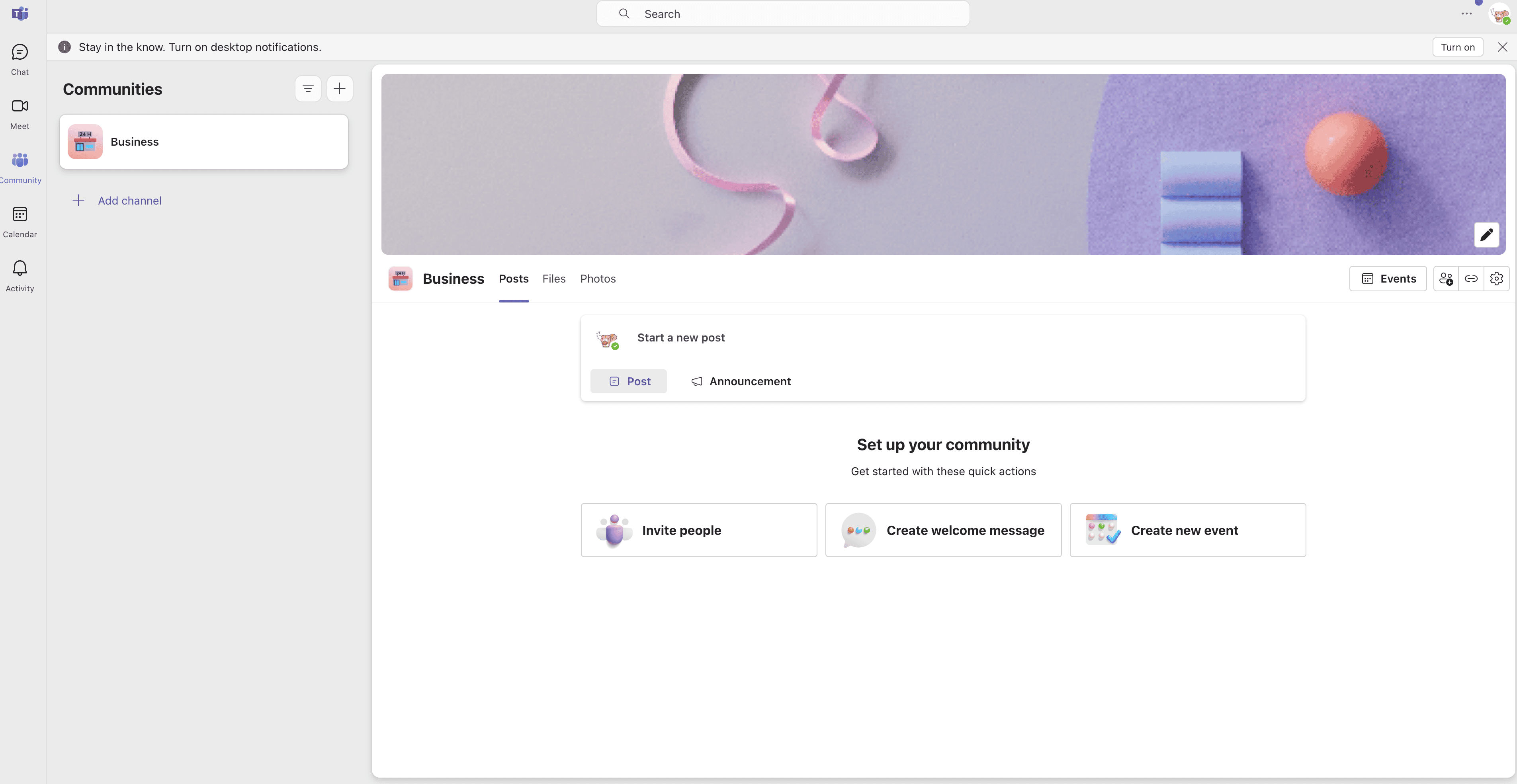- Go to the destination page, for example: Teams Chat.
