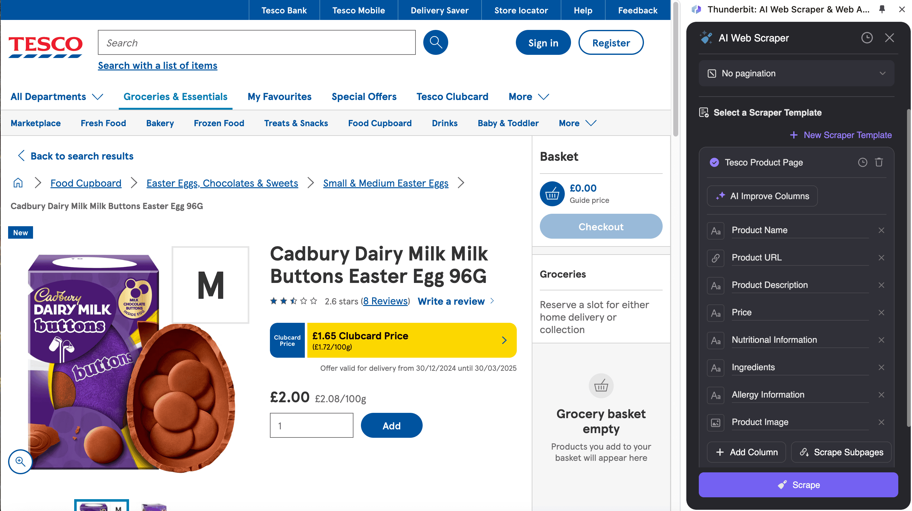 - Navigate to the Product or SKU Page: Go to the Tesco product listing or SKU page you want to scrape.