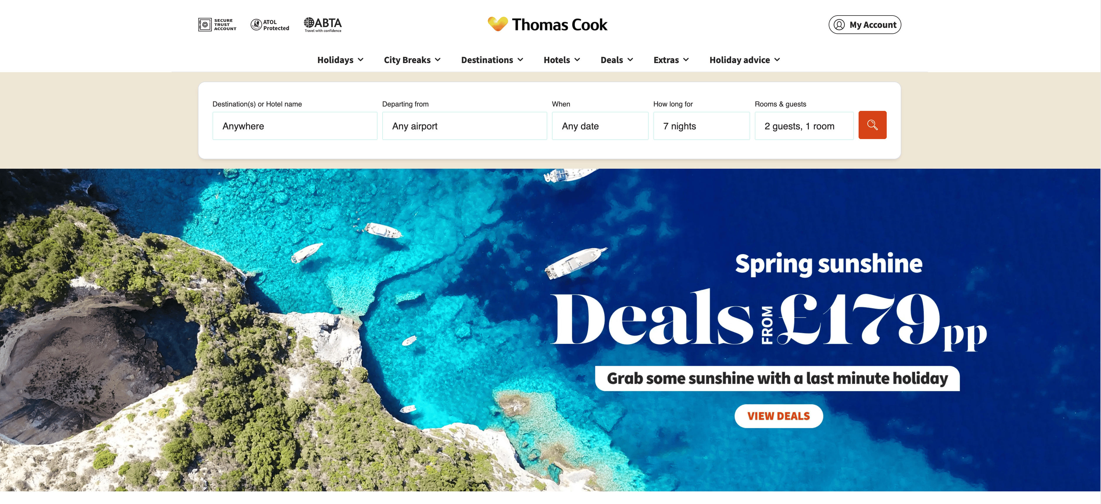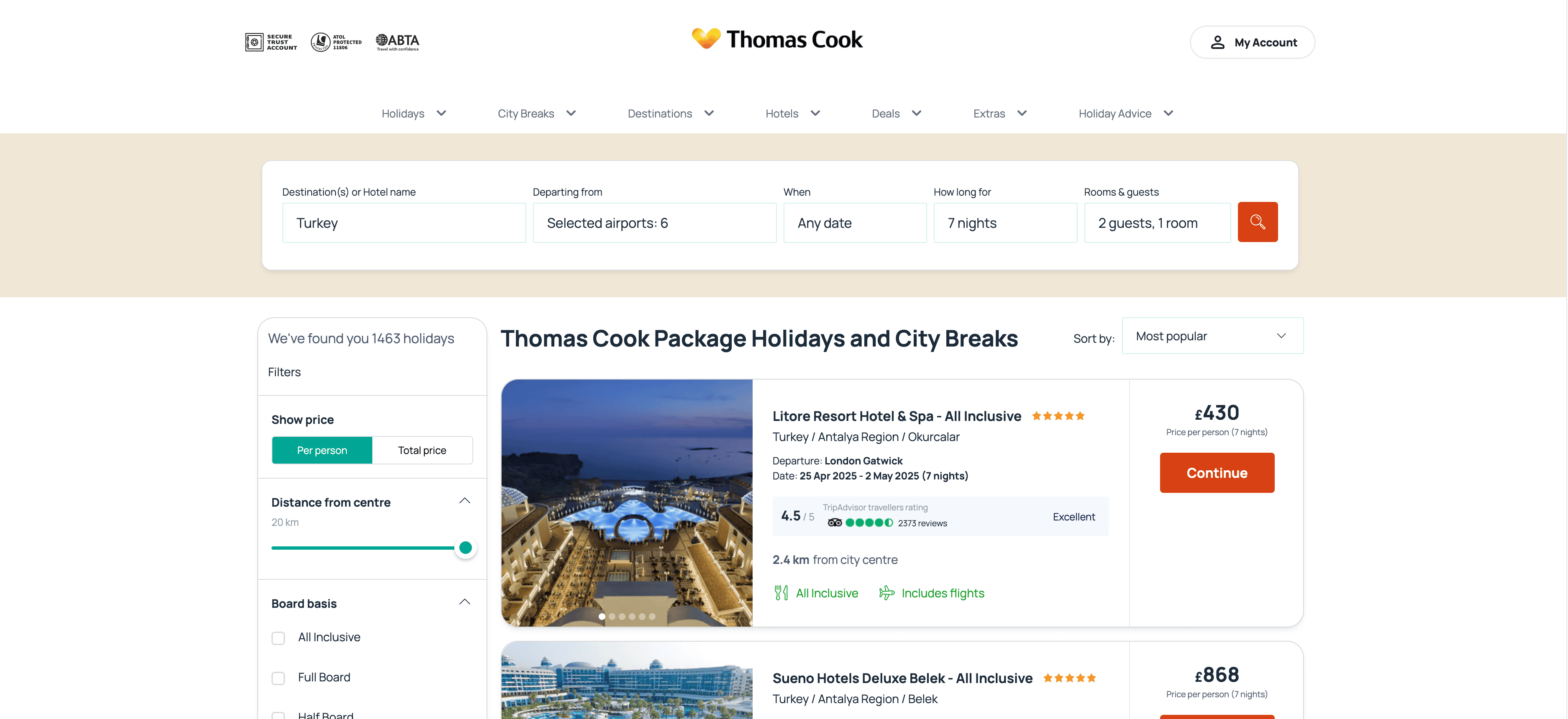 - Go to the destination page, for example: Thomas Cook Hotel Search Result Page.