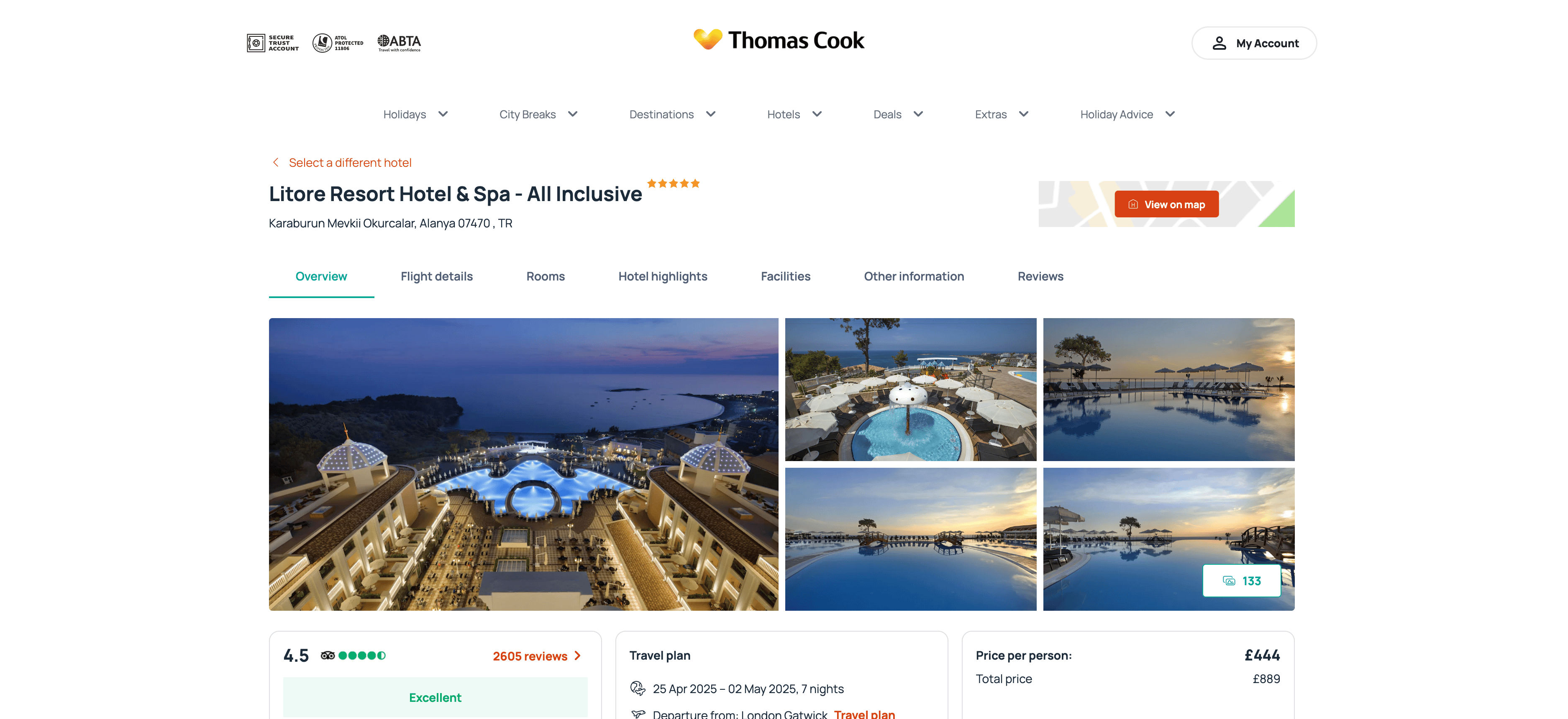 - Go to the destination page, for example: Thomas Cook Hotel Details Page.