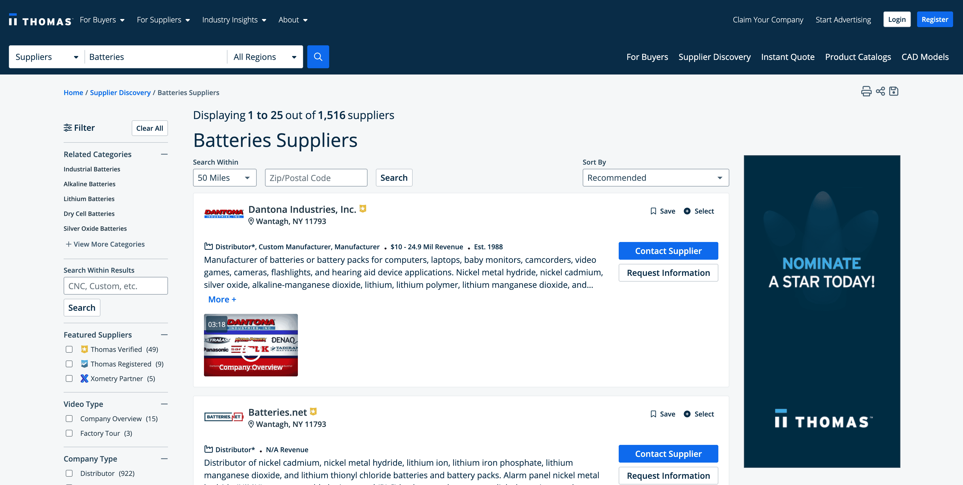 - Go to the destination page, for example: Thomasnet Supplier Listing.
