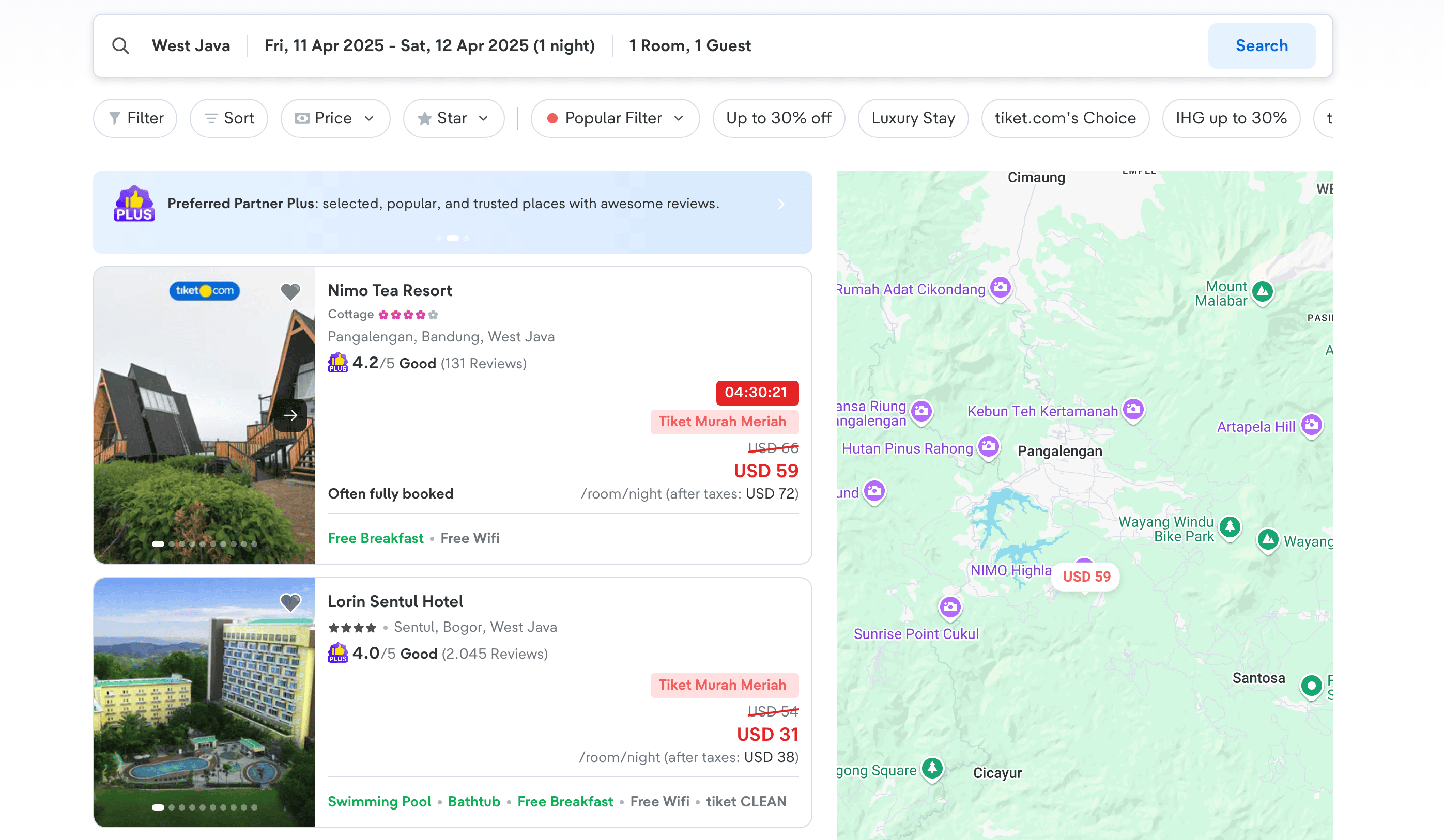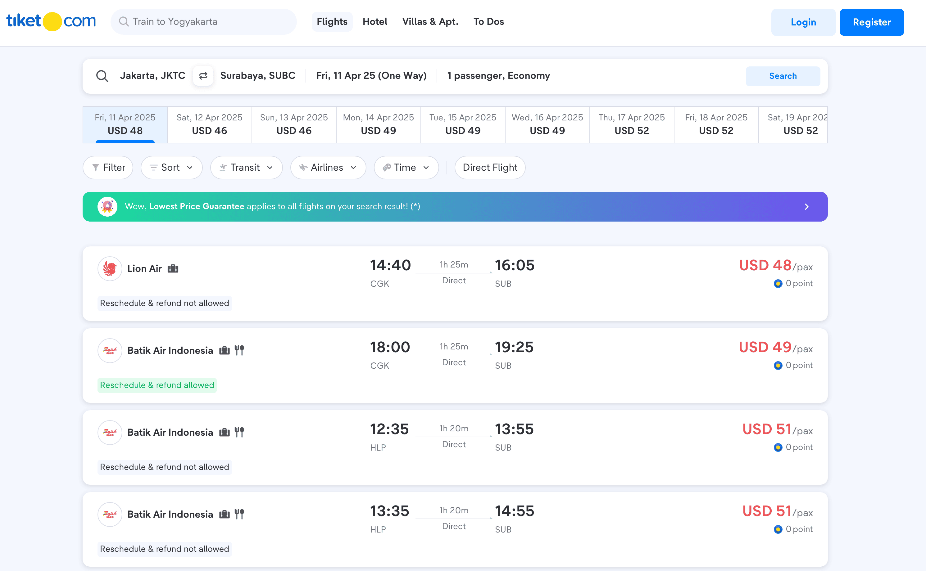 - Navigate to the Flight or Hotel Search Result Page: Go to the Tiket.com page you want to scrape.