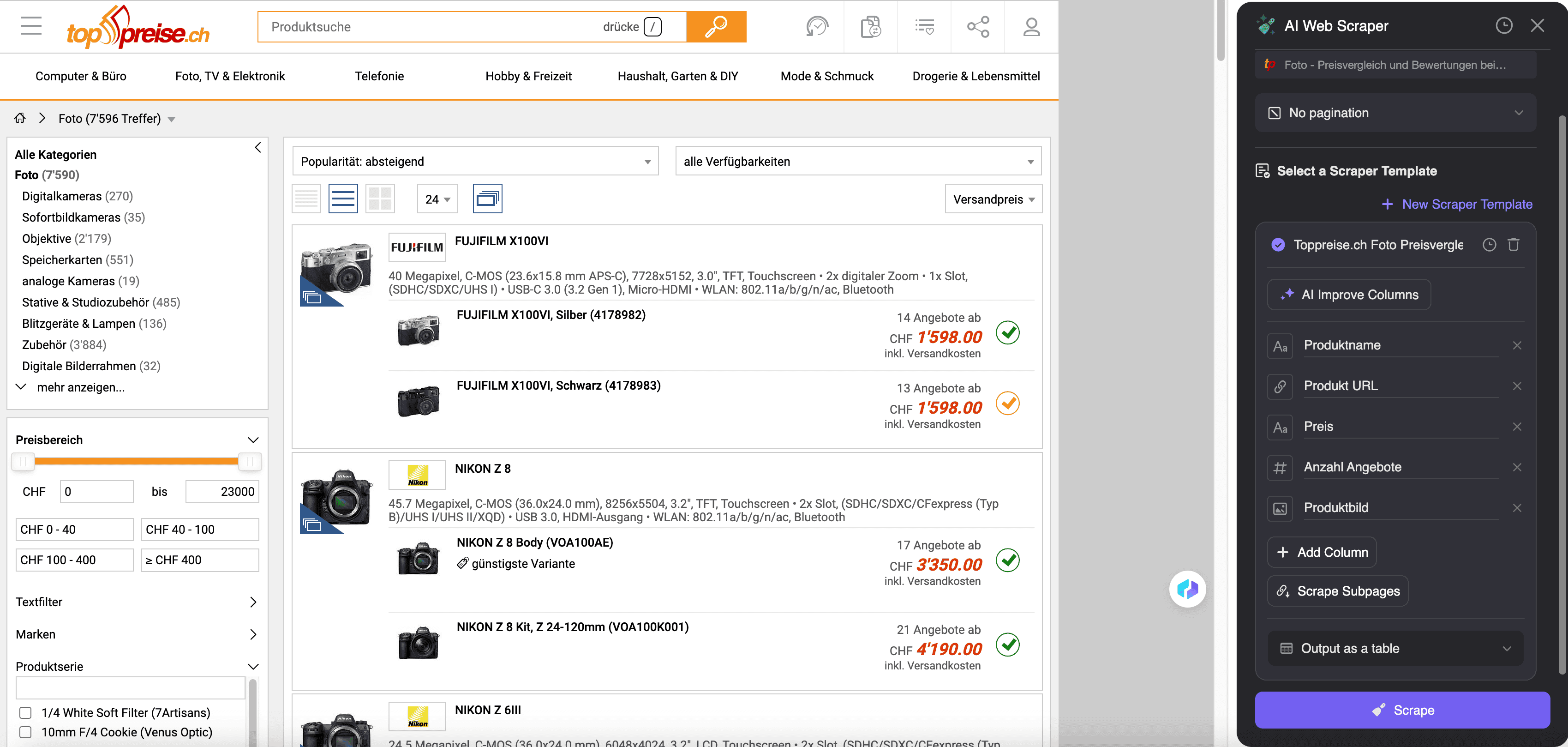 What can you scrape with Toppreise Scraper?