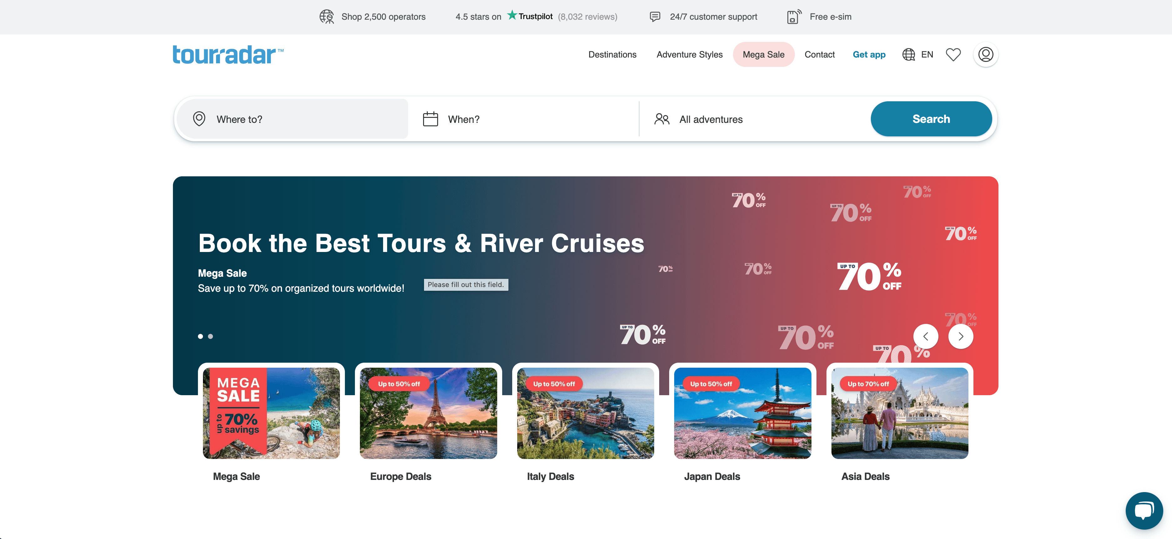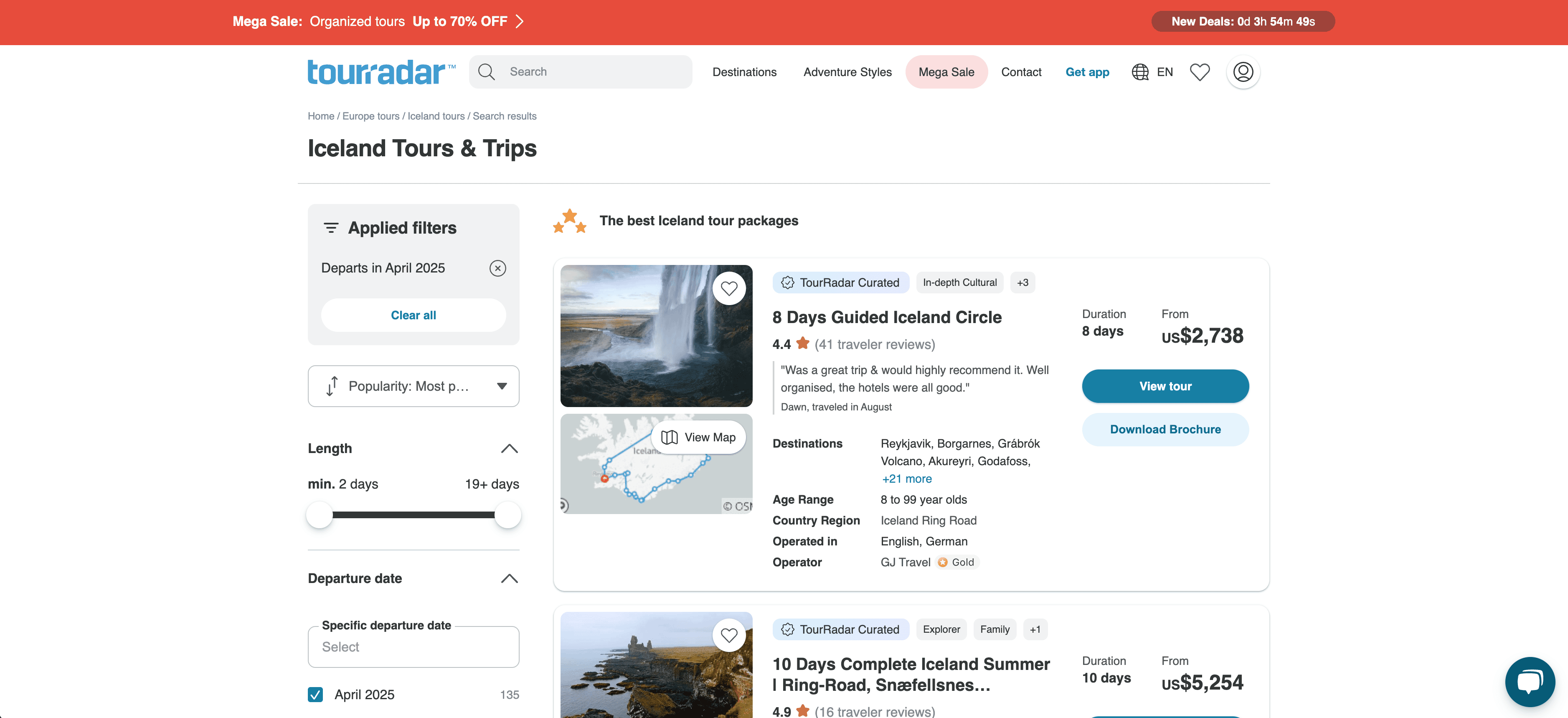 - Go to the destination page, for example: TourRadar Tour Listing Page.