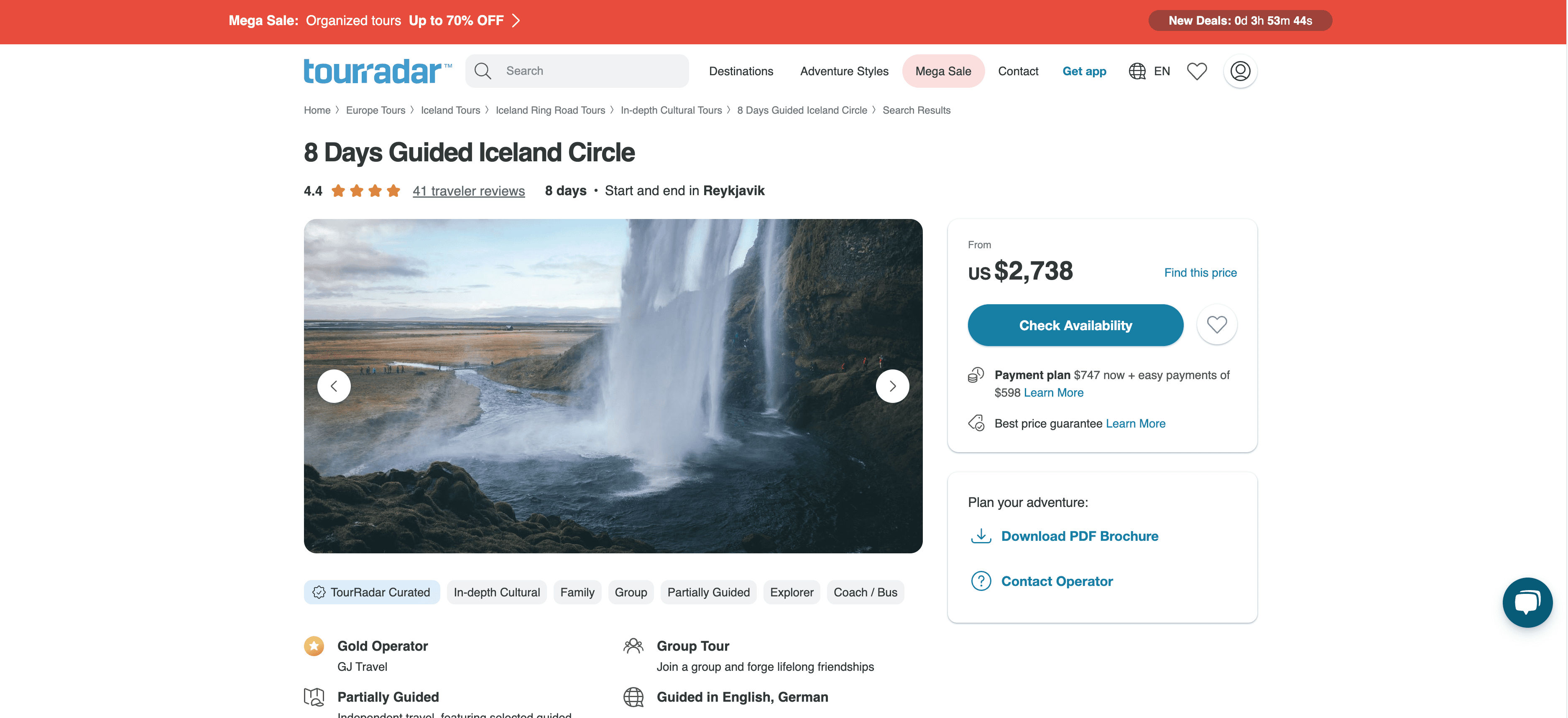 - Go to the destination page, for example: TourRadar Tour Details Page.