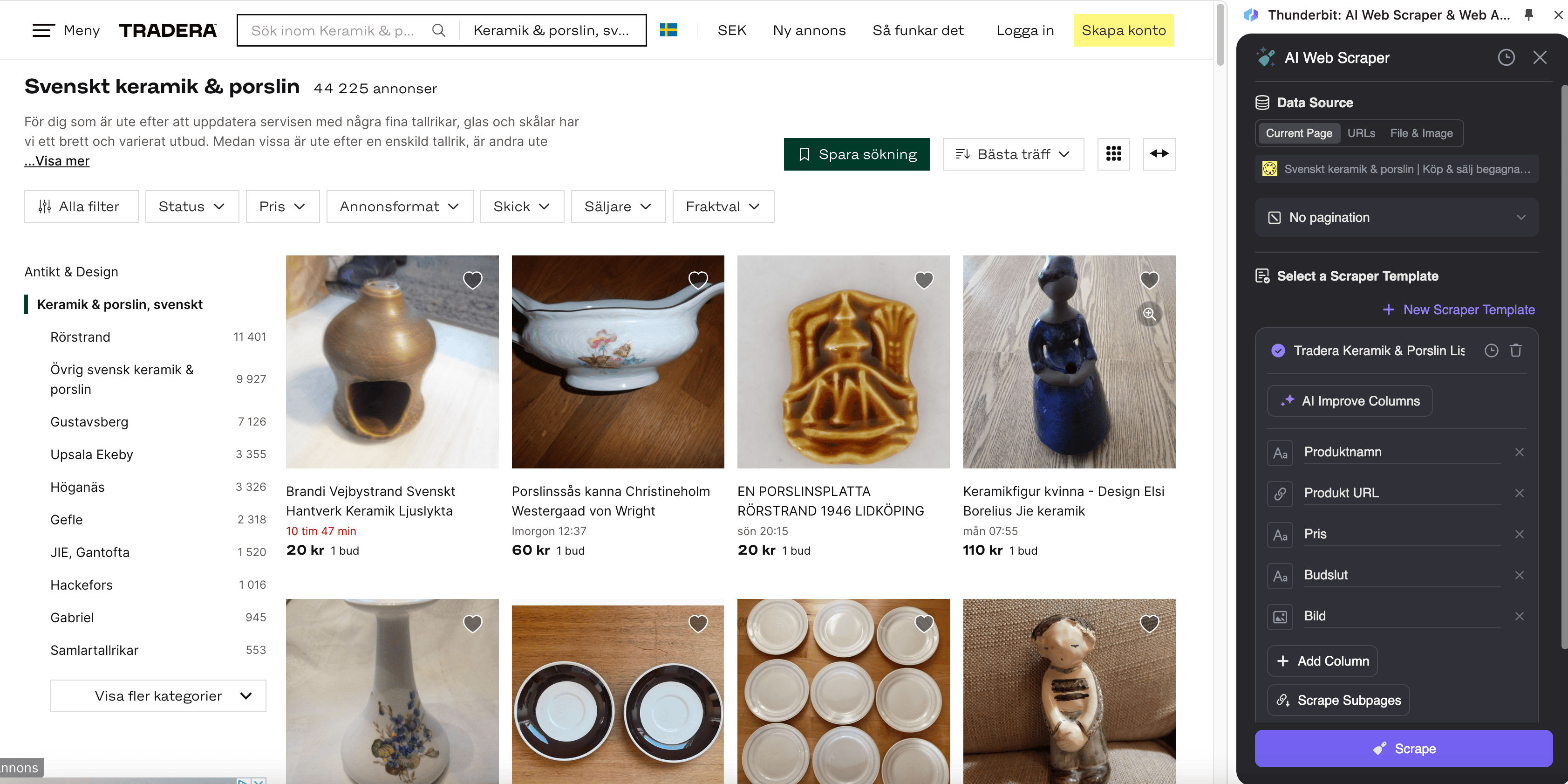 1. Scrape Tradera Antiques & Design Listings Page