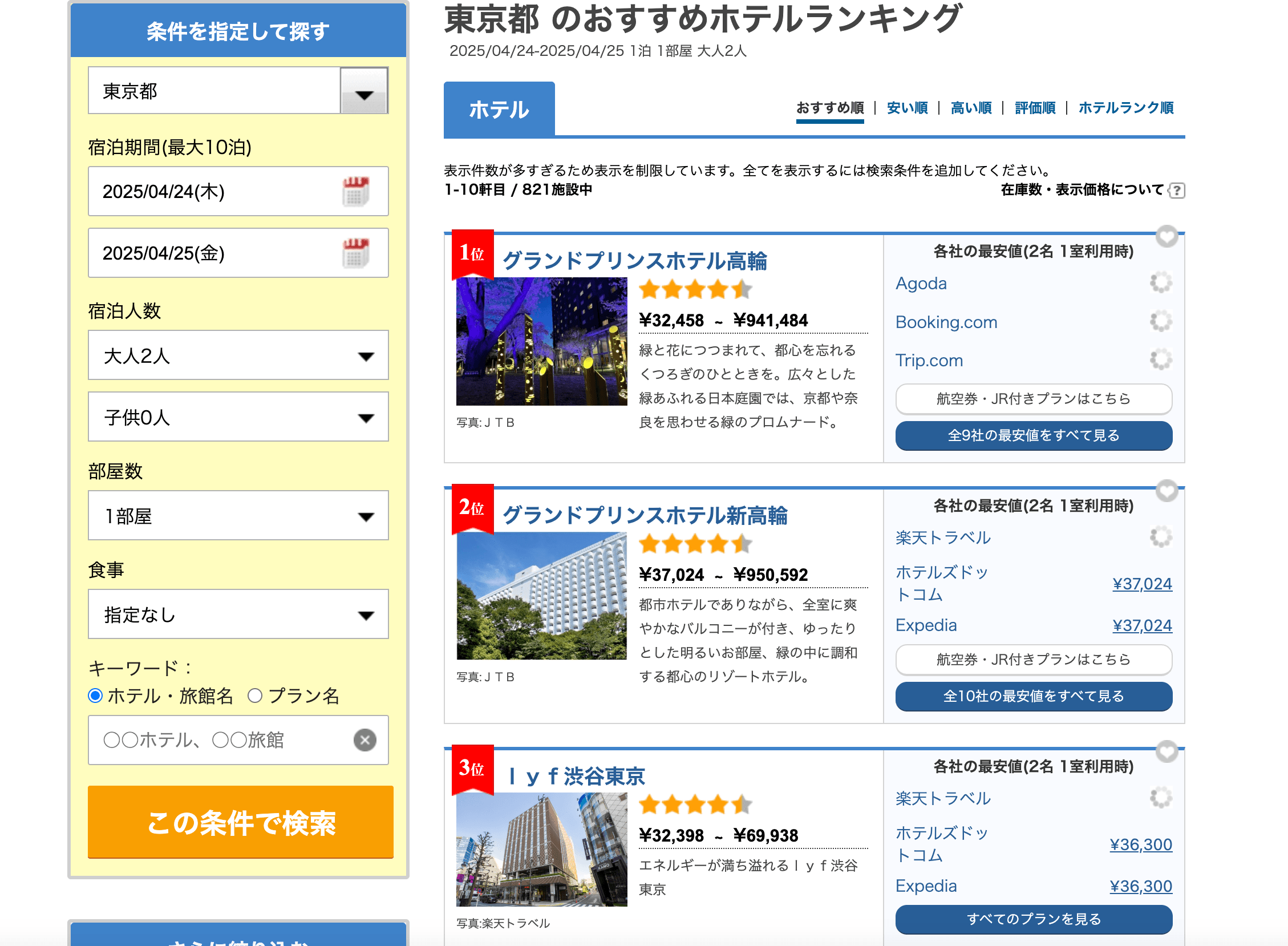- Go to the destination page, for example: Hotels in Tokyo.
